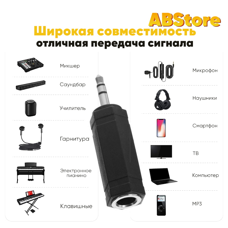 Качественный переходник с гнездом Jack 6.3 и штекером Jack 3.5. Данный адаптер пригодится при подключении звукового оборудования друг к другу.Преимущества:Передача звука без шумовКомпактный размерХарактеристики:Разъем: Jack 6.3Штекер: Jack 3.5Комплектация
