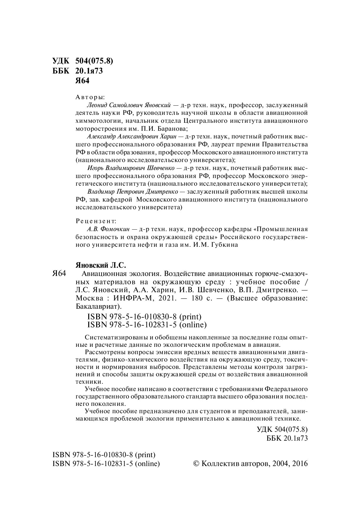 Систематизированы и обобщены накопленные за последние годы опытные и расчетные данные по экологическим проблемам в авиации.Рассмотрены вопросы эмиссии вредных веществ авиационными двигателями, физико-химического воздействия на окружающую среду, токсичност