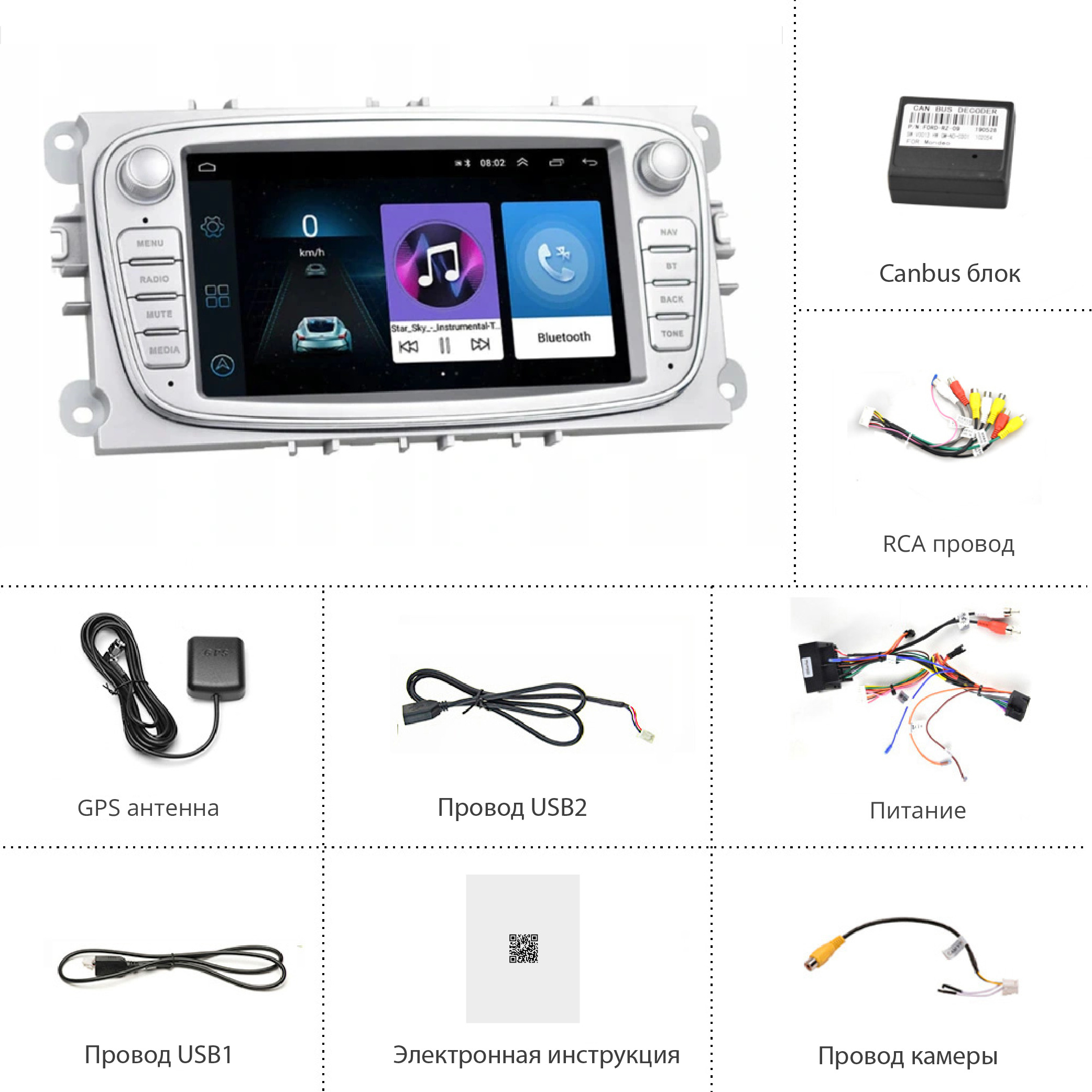 ПРОВЕРКА КАЖДОЙ МАГНИТОЛЫ ПЕРЕД ОТПРАВКОЙ.Магнитола подходит на модели Ford:Mondeo 2007-2011Focus 2008-2011S-Max 2008-2012 C-Max 2008-2011Galaxy 2006-2012Kuga 2008 2009 2011 2012Провода для подключения к штатным разъемам с Canbus адаптером идут в комплект