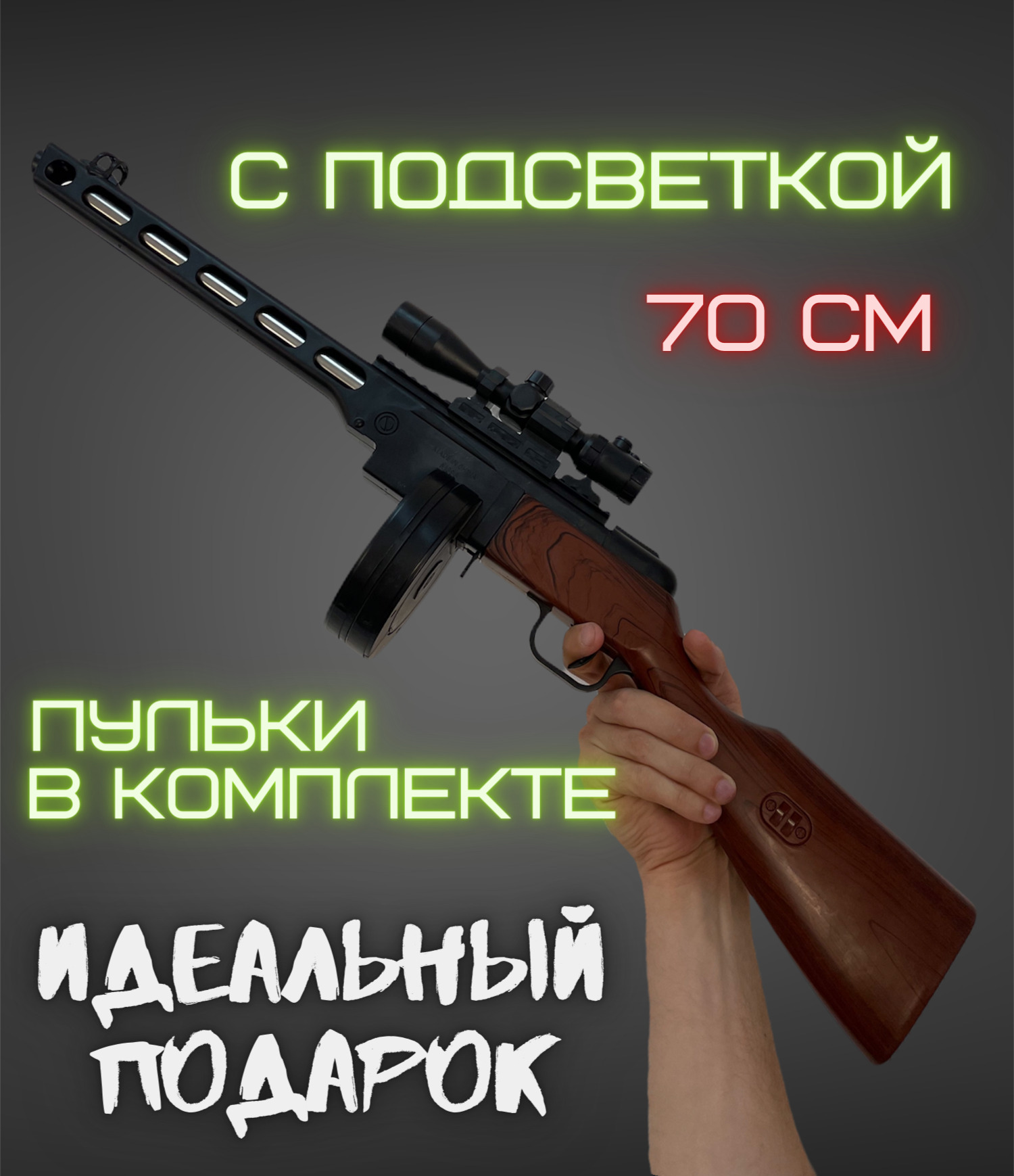 Легендарный автомат ППШ - это крутой советский пистолет-пулемёт, разработанный в 1940 году конструктором Г. С. ШпагинымСМОТРИТЕ ВИДЕОИзготовлен из качественного ударопрочного пластика, и поэтому выглядит очень реалистично, создавая впечатление н