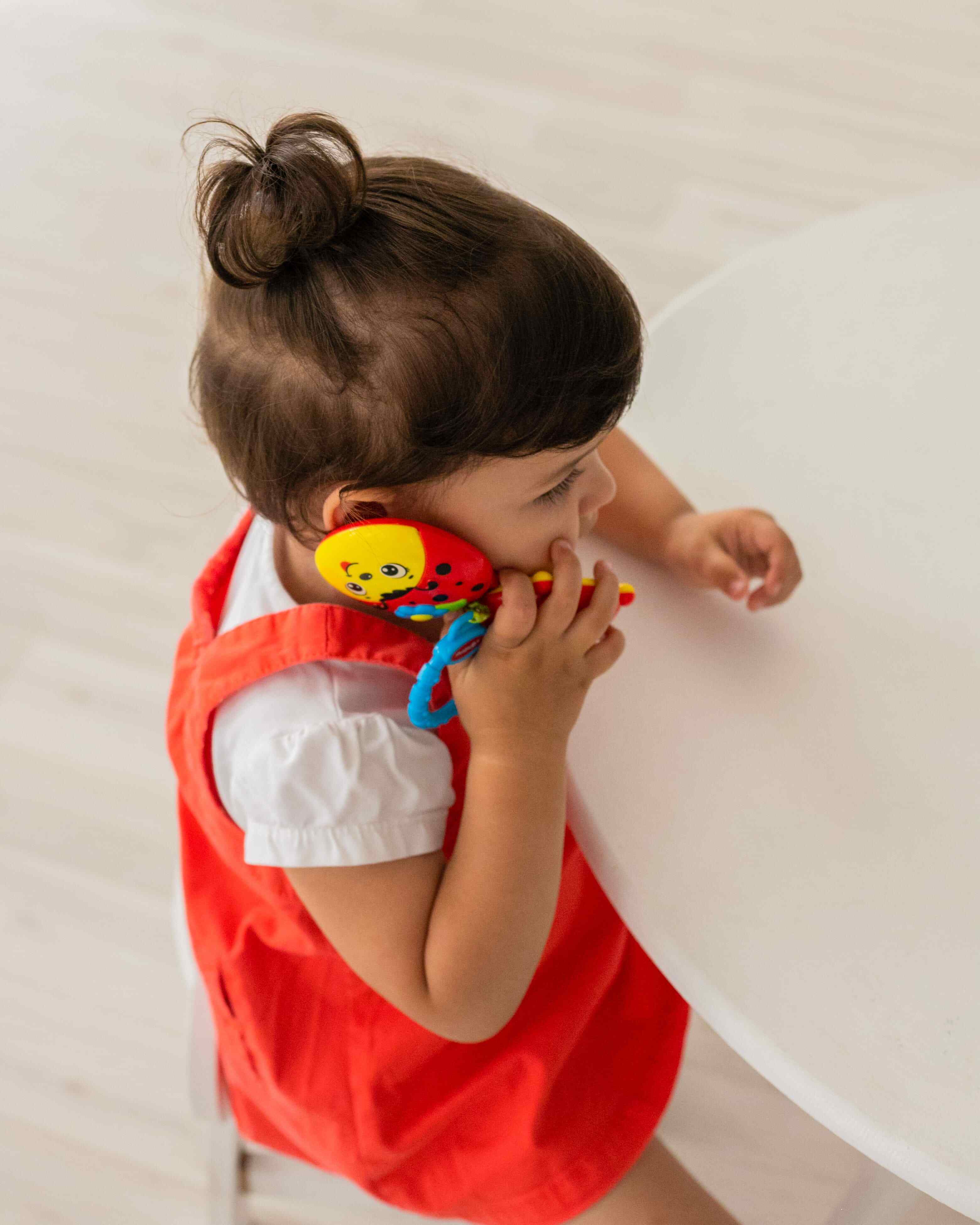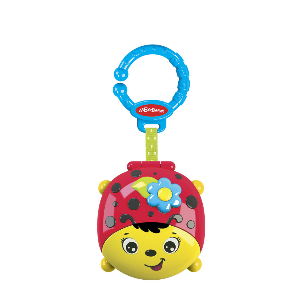 Музыкальная подвеска-телефончик в виде забавной божьей коровки – для малышей от 6 месяцев! Крышечка телефончика открывается и закрывается, а тактильные кнопочки развивают пальчики ребенка. При нажатии на кнопочки можно послушать веселые звуки, обучающую