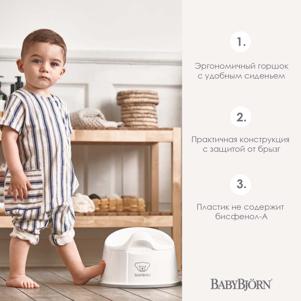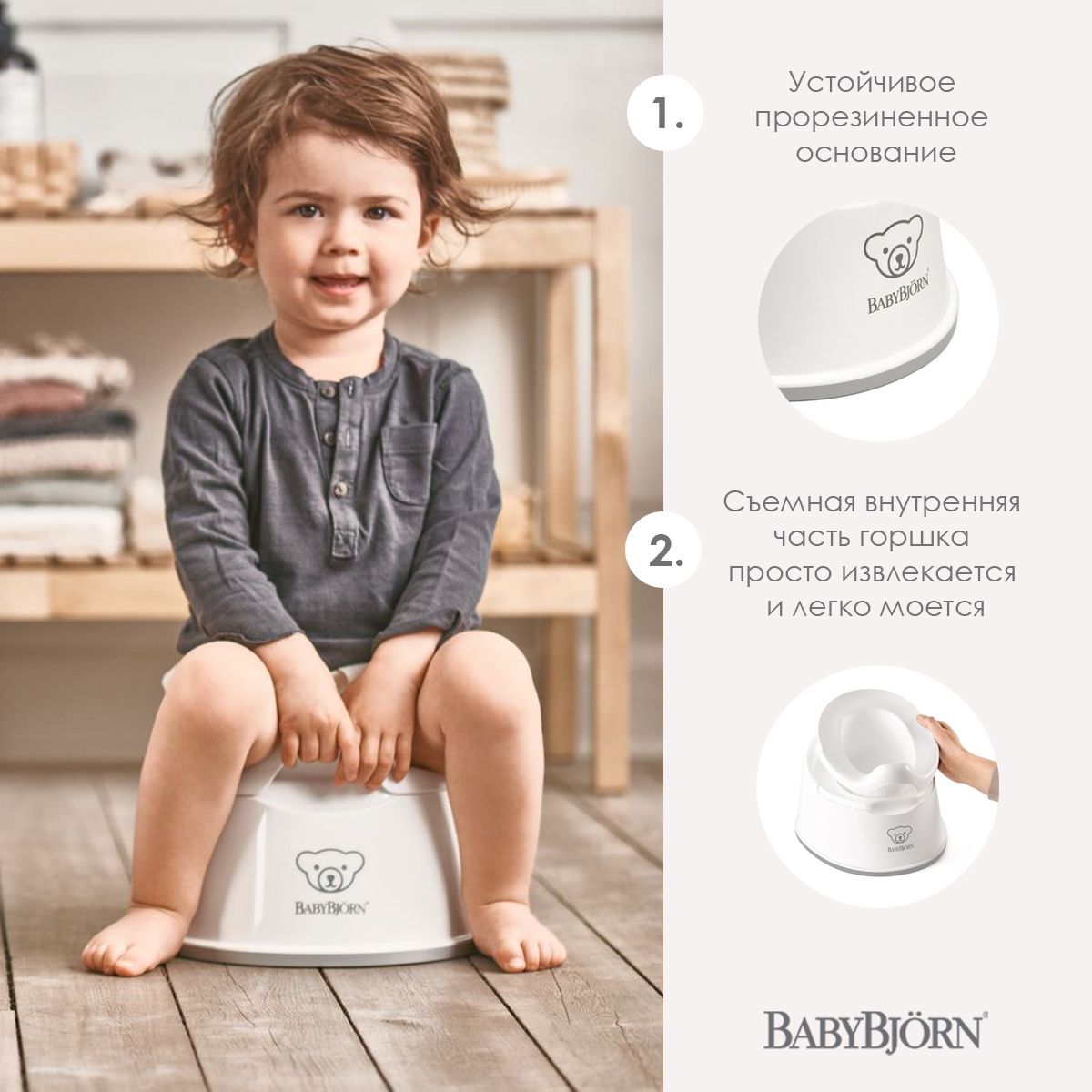 Комплектация:Горшок, вынимающаяся чашаОписание:Детский горшок BABYBJORN SmartПрактичная конструкция с защитой от брызг;Съемная внутренняя часть горшка просто извлекается и легко моется;Устойчивое прорезиненное основание;Функциональность модели сочетается