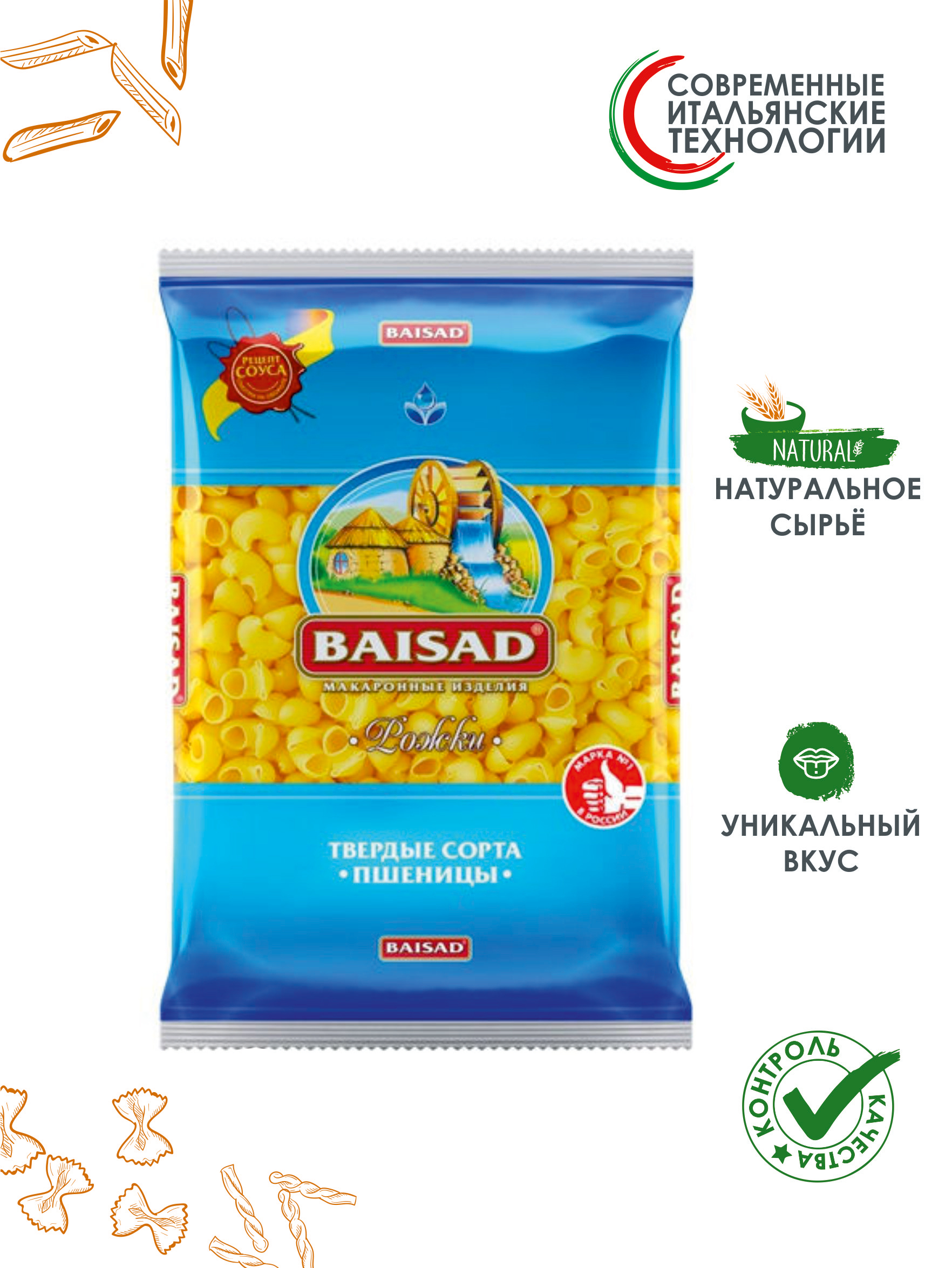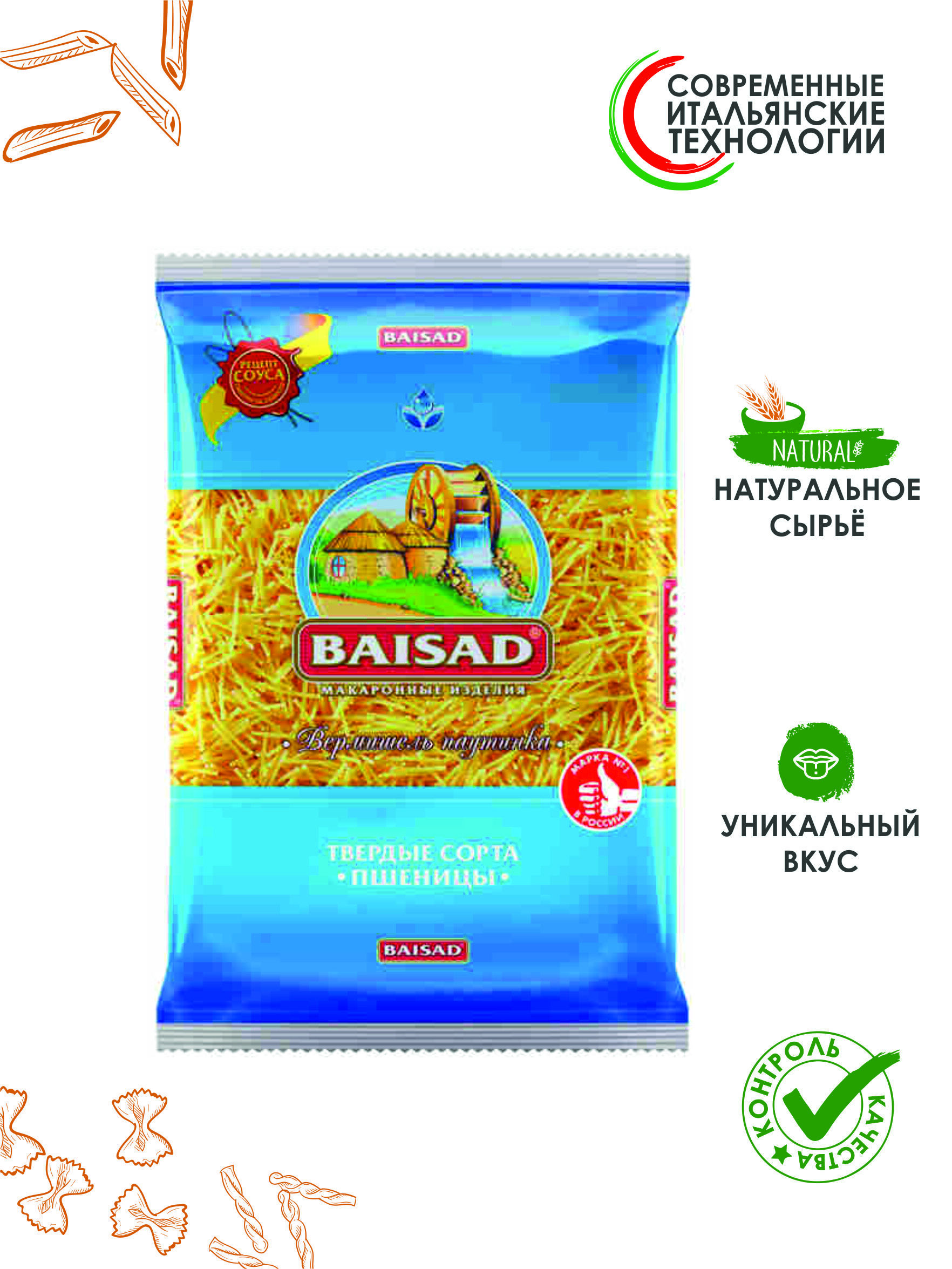 Условия хранения:В сухом местеОписание:Макароны группы А, приготовленные из тщательно отобранного зерна твёрдых сортов пшеницы, с использованием артезианской воды, полностью соответствующие европейским стандартам. Бренд BAISAD является обладателем семи Гр