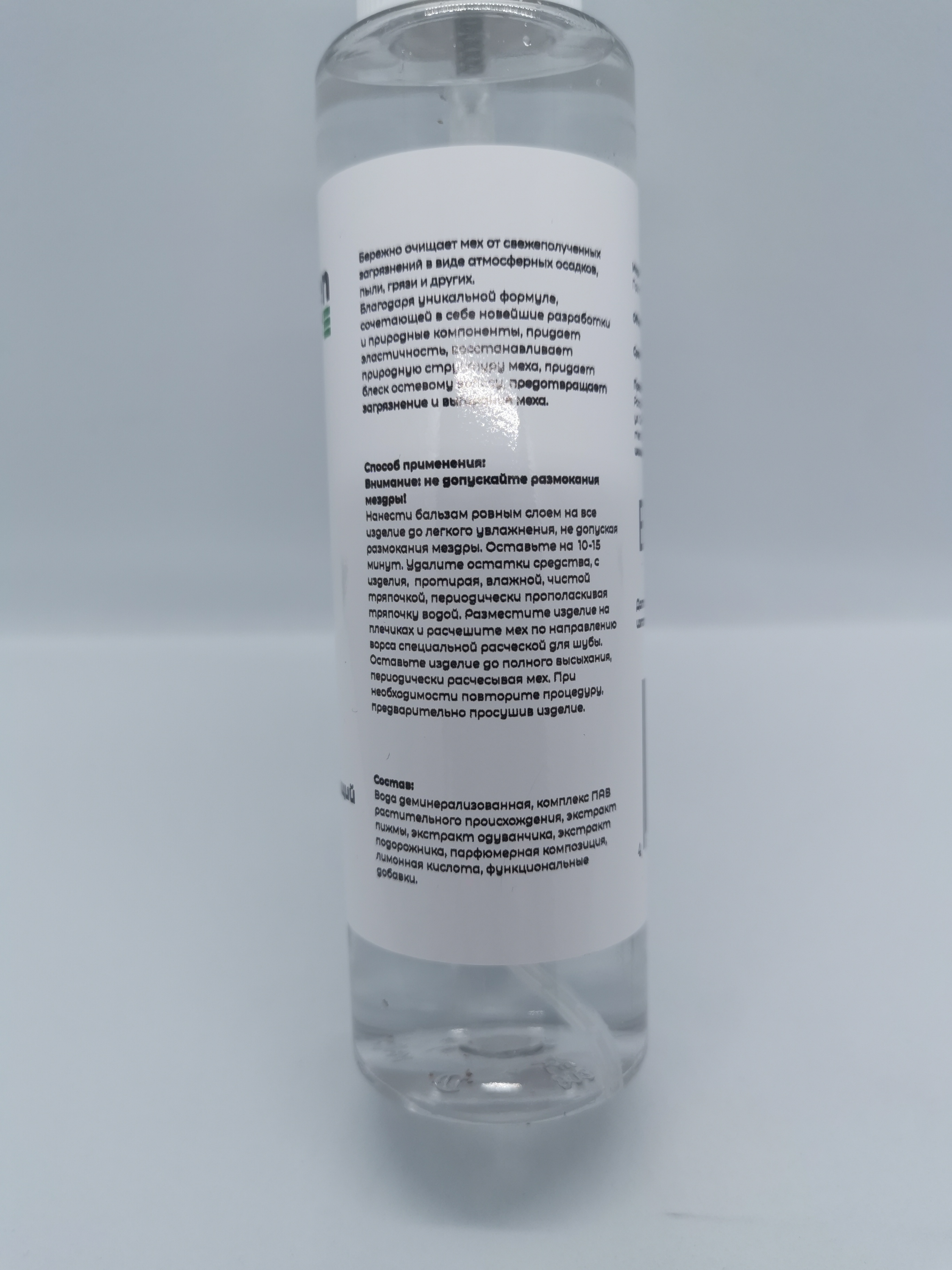 Чистящее средство органического происхождения - Бальзам восстанавливающий для меха.Благодаря уникальной формуле, сочетающей в себе новейшие разработки и природные компоненты, придает эластичность, восстанавливает природную структуру меха, придает блеск ос