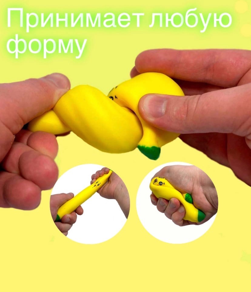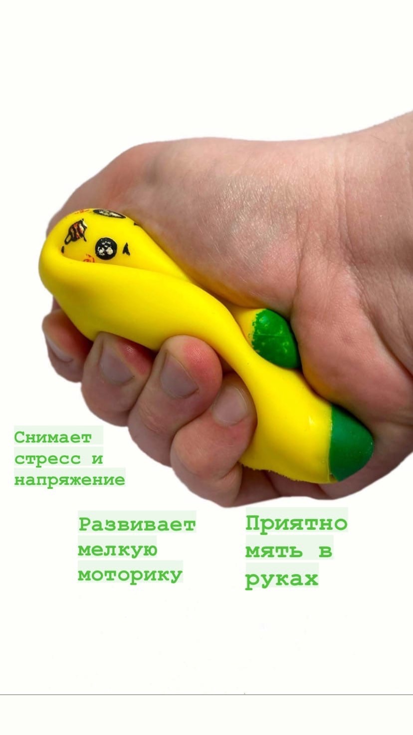 Хит, покоривший покупателей по всему миру, теперь и в России. Просто один раз сожмите в руке, и вам больше не захочется его отпускать. Яркая игрушка Бананчик создана для того , чтобы успокаивать нервы, развивать мелкую моторику и телесные ощущения, снимае