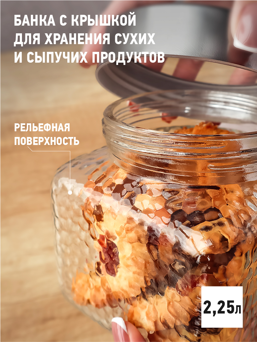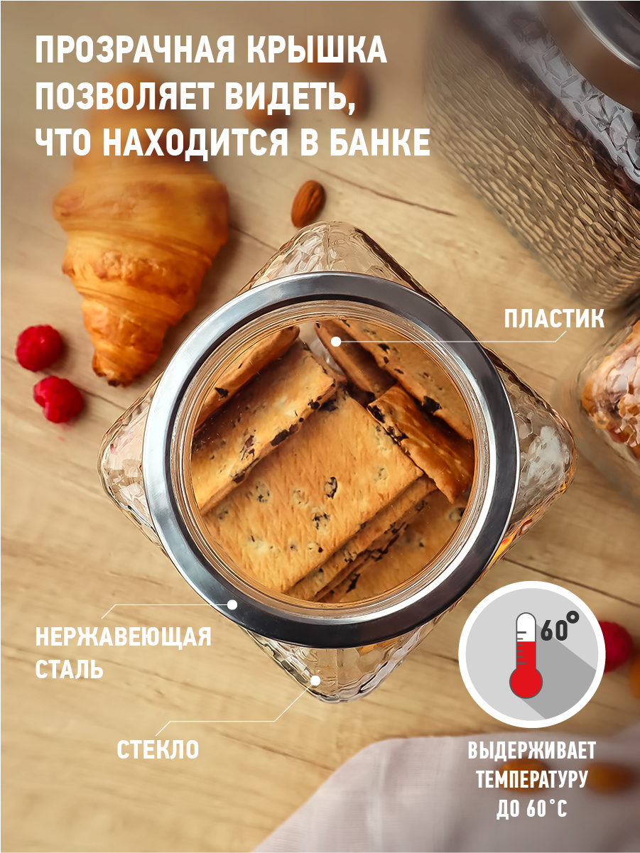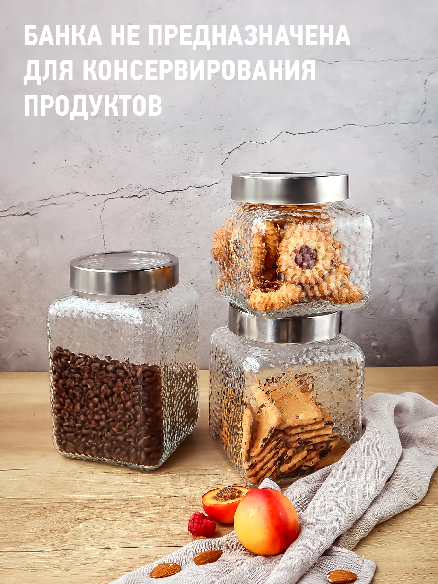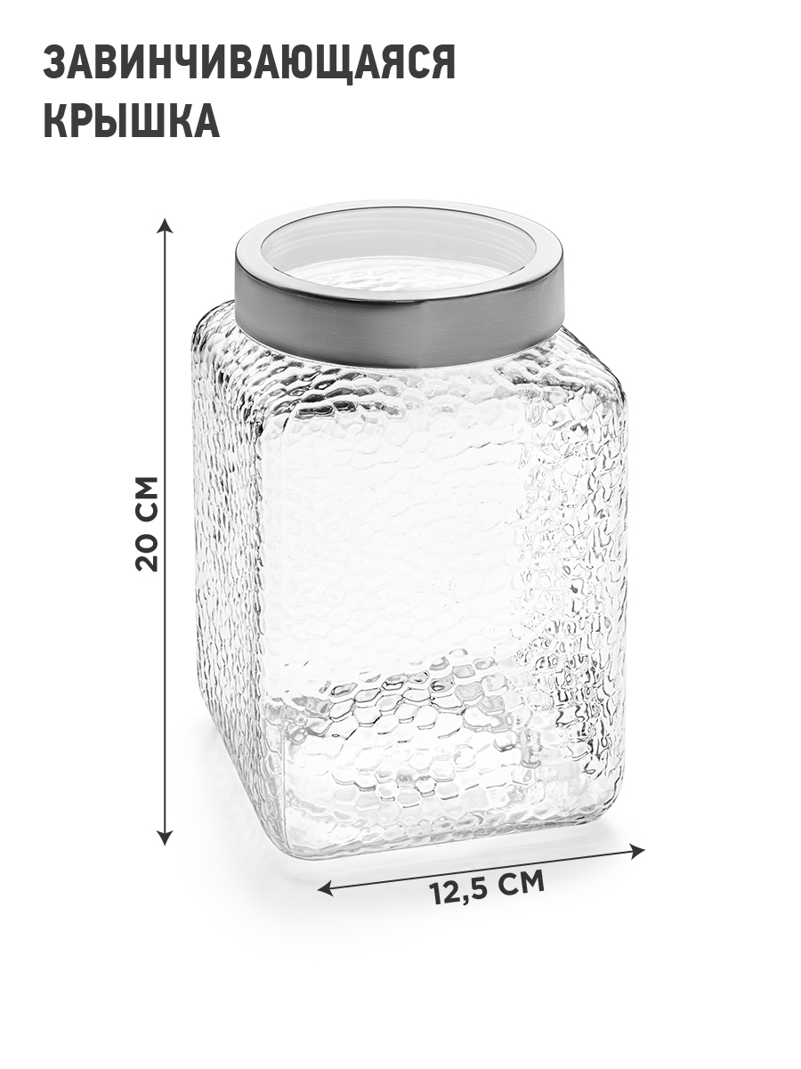 Комплектация:банка с крышкой, 1 шт.Описание:Банка предназначена для хранения сухих, сыпучих продуктов, круп, сахара, кофе, чая, печенья, макаронных изделий, специй. Банка оснащена плотно закручивающейся крышкой, сохранит в безопасности содержимое от влаги