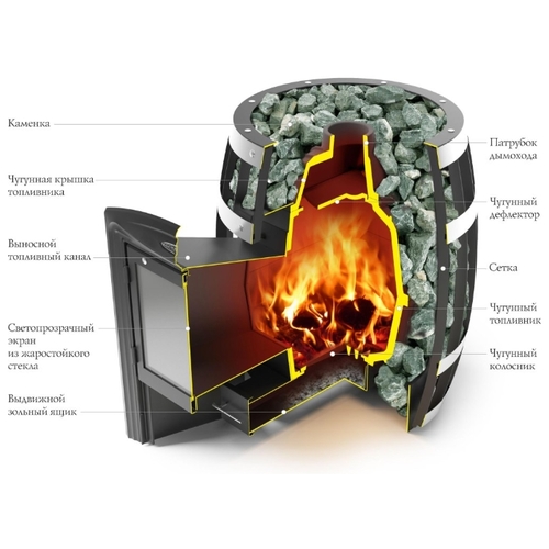 Дополнительная информациябанная печь TMF сеточного типа, топливник которой выполнен из литейного чугуна