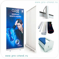 Особенности стендов ролл-ап "Люкс-Эконом": Торцы черного цвета. Дополнительные ребра жесткости на торцах. Точное перпендикулярное расположение стенда относительно пола, устойчивость. Пластиковый подпятник для вертикальной…