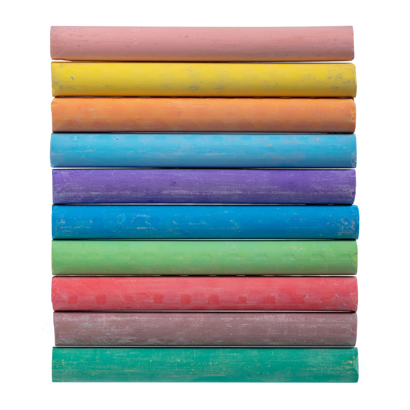 Набор цветных мелков прекрасно подойдет для школьной доски или для асфальта. В наборе 10 ярких цветов. Мелки круглой формы, не пористые.