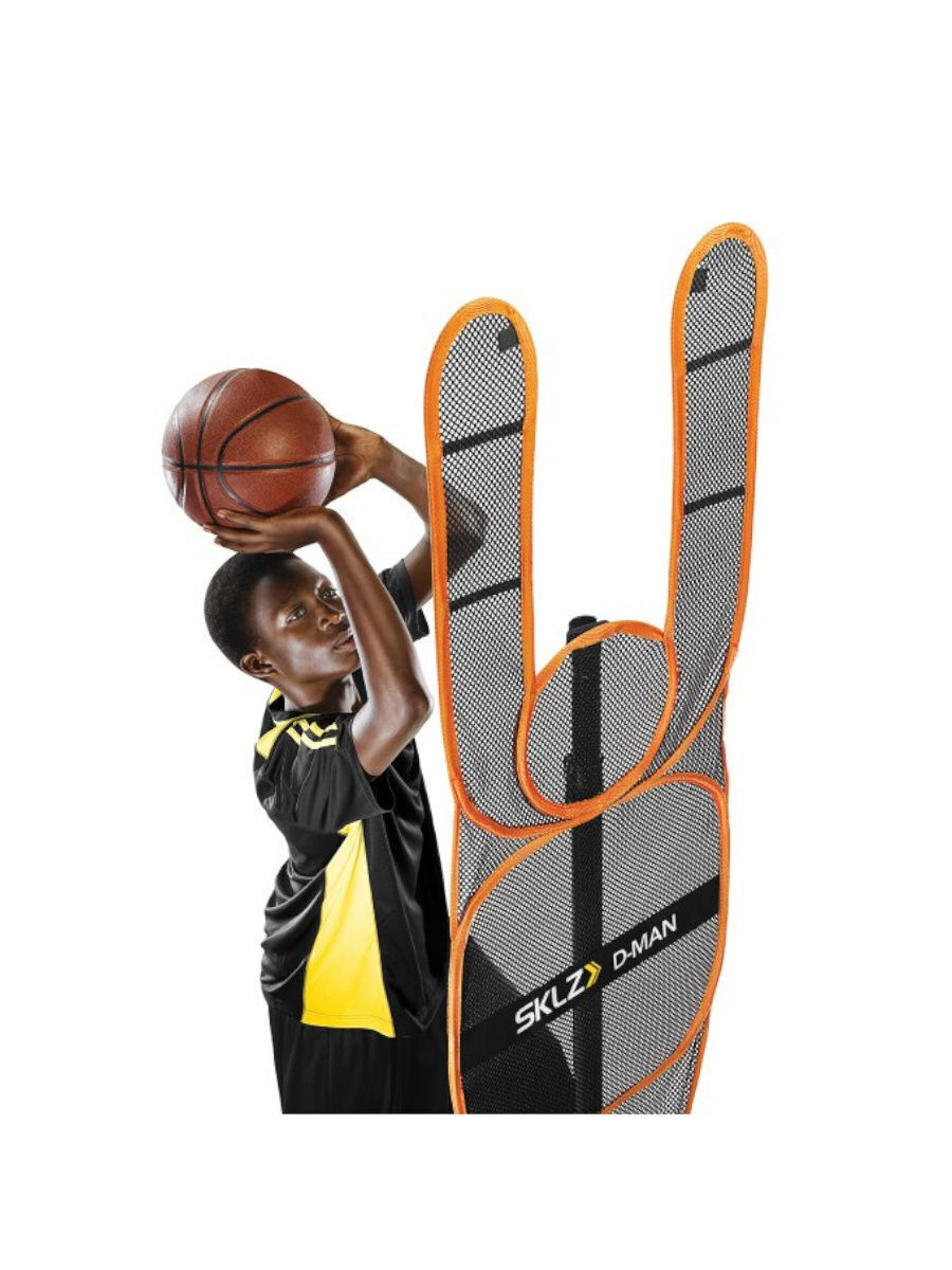 Баскетбольный манекен SKLZ D-MAN — идеальный «партнер» для тренировок. Тренажер имитирует человека с поднятыми вверх руками, что позволяет отрабатывать высокие броски, разыгрывать передачу мяча или делать обводки вокруг, тренируя координацию, ловкость и м