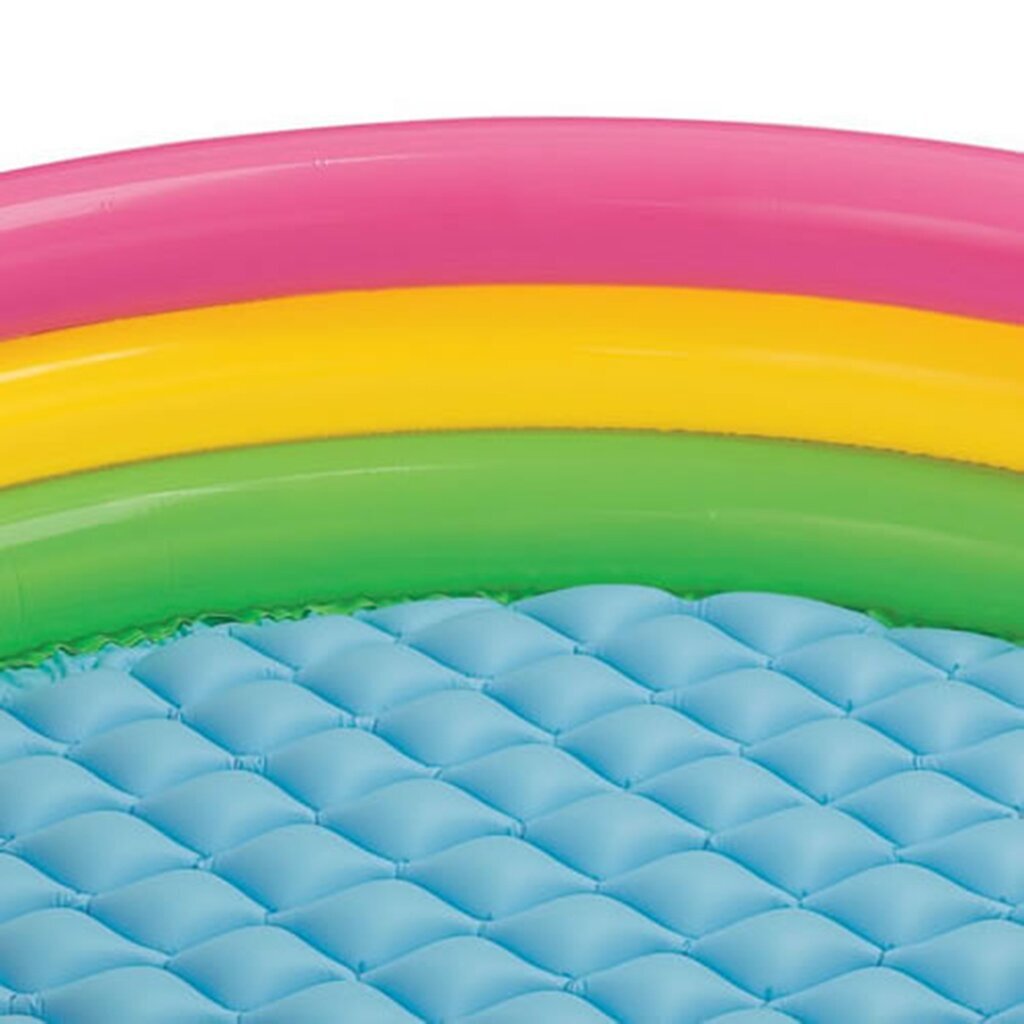 Изготовлен из высококачественного винила толщиной 0.2 мм.Легко и быстро устанавливается.Мягкое надувное дно.Яркий, жизнерадостный дизайн.Рекомендуется для детей от трех лет.Комплектация:Бассейн - 1 шт