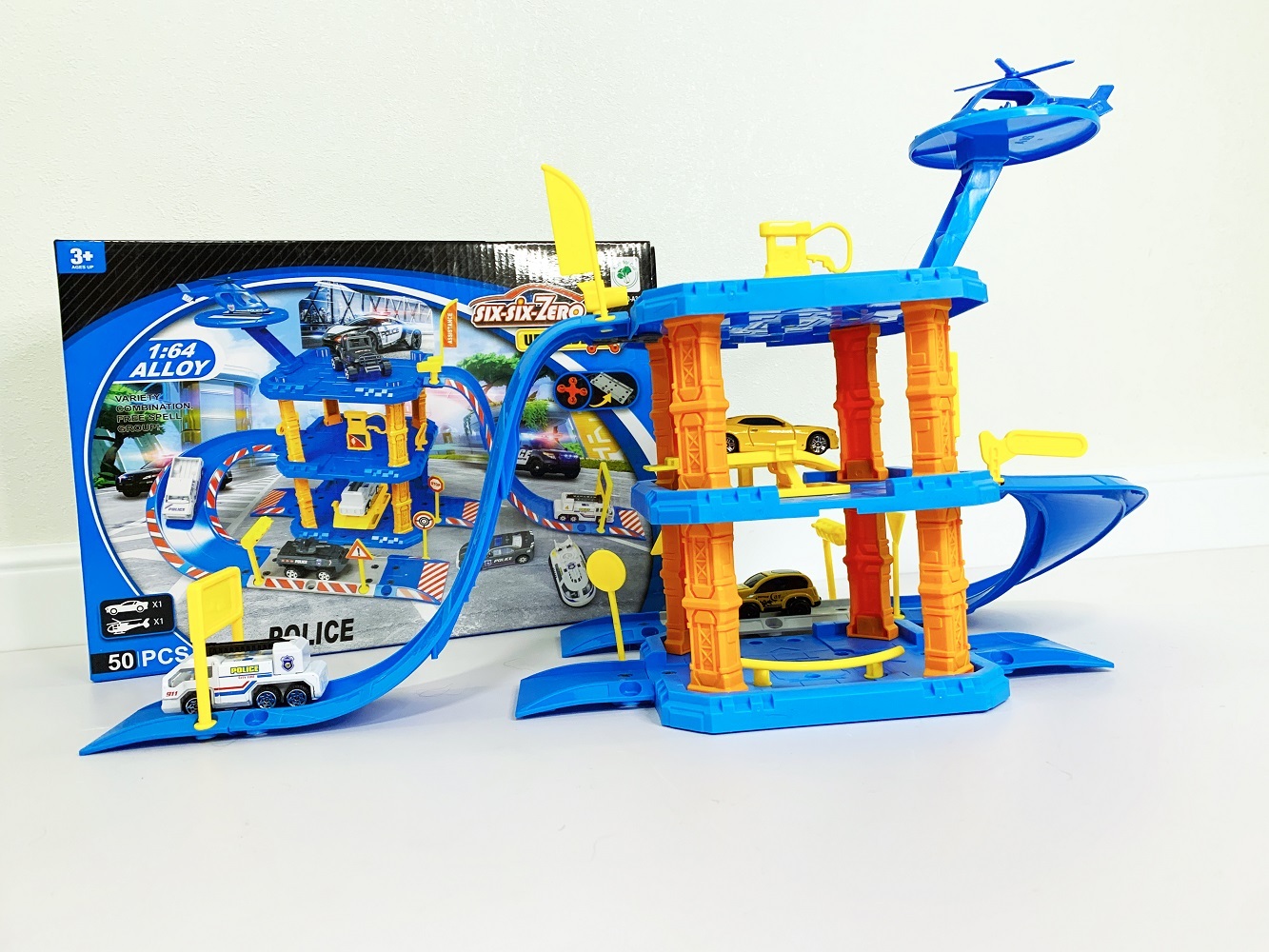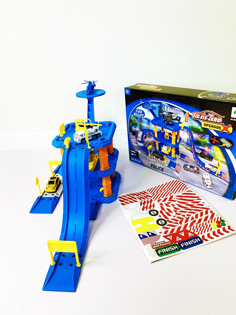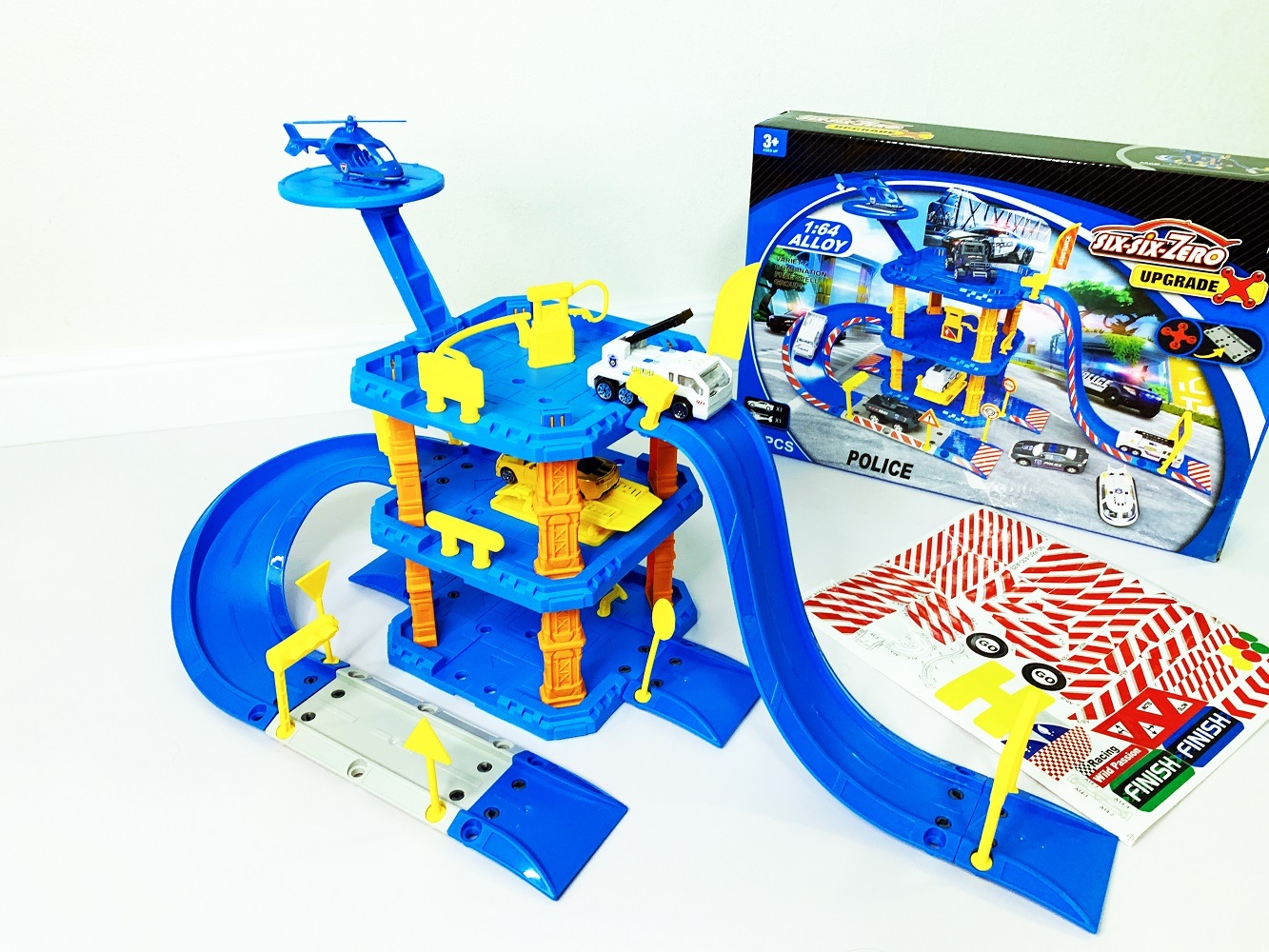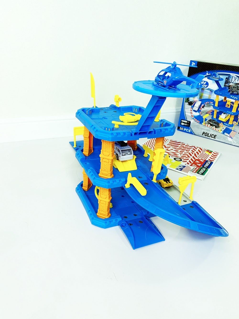 Начни сражение с преступностью, В твоем вооружение полицейские силы города.Трёхэтажная парковка вместит все любимые машинки мальчишки. Транспортный комплекс оборудован платформой для ремонта, заправочной станцией и вертолётной площадкой. Для быстрого выез