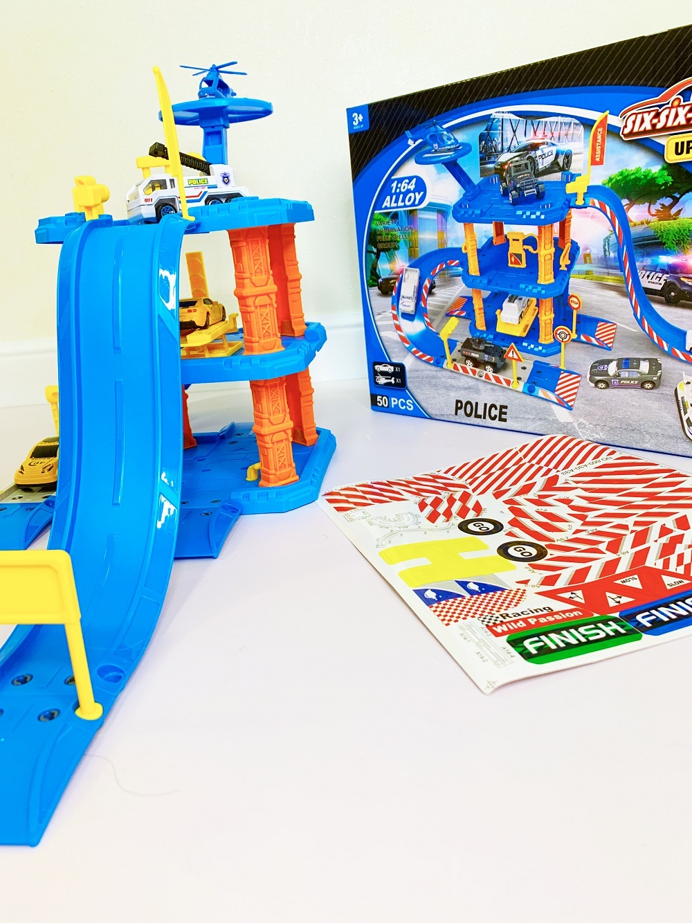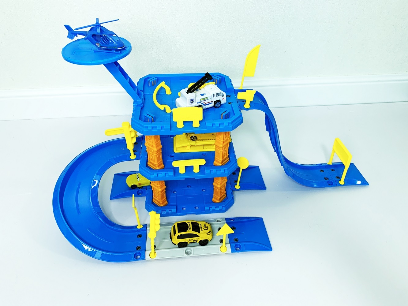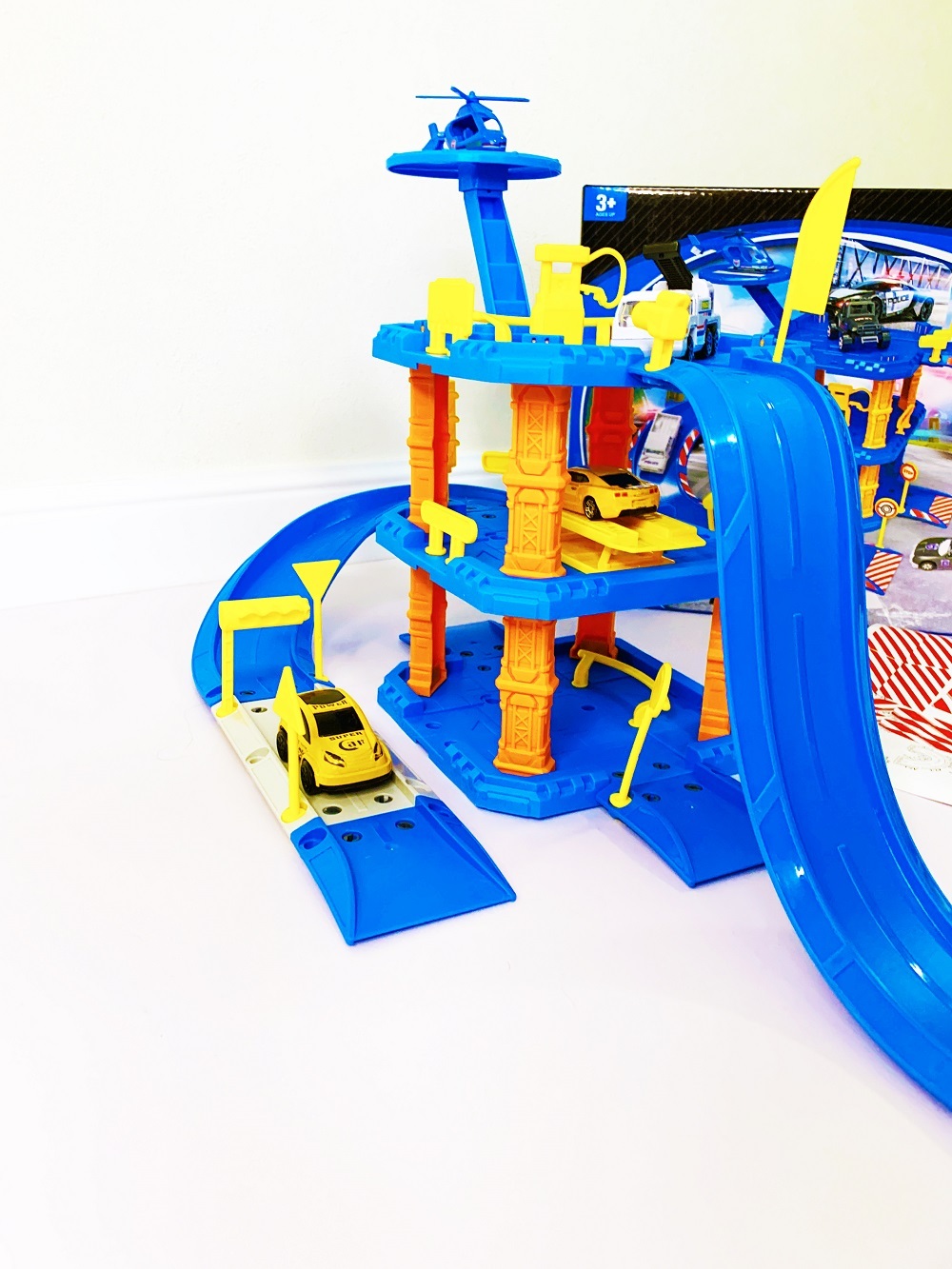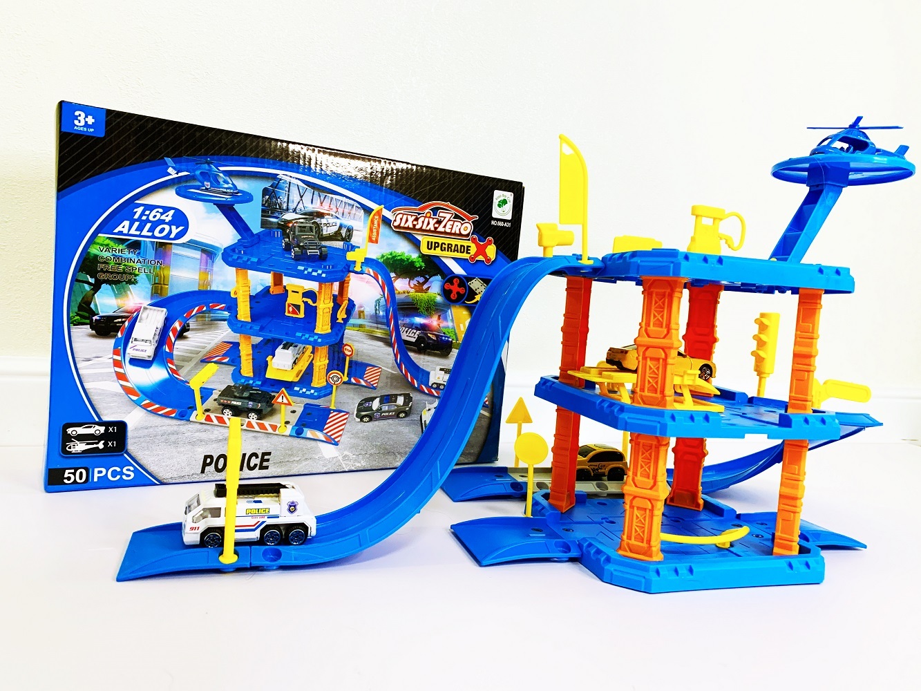 Начни сражение с преступностью, В твоем вооружение полицейские силы города.Трёхэтажная парковка вместит все любимые машинки мальчишки. Транспортный комплекс оборудован платформой для ремонта, заправочной станцией и вертолётной площадкой. Для быстрого выез