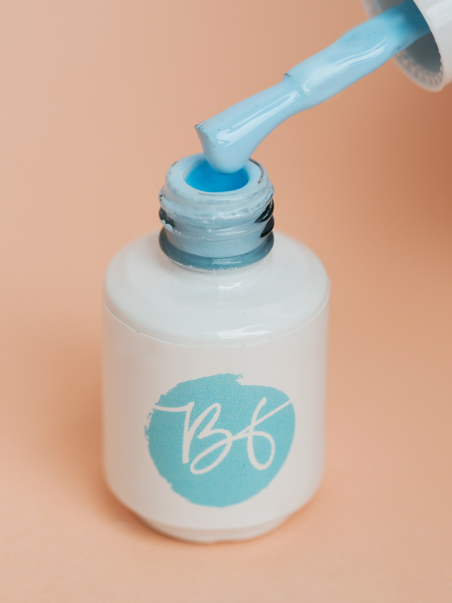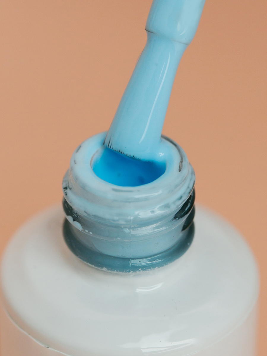 Гель-лак для ногтей небесно-голубого цвета - плотное покрытие в 1-2 слоя, не полосит. Удобная средне-густая консистенция. Удобная кисточка. Покрытие сохраняет глянцевый блеск до 30-ти дней и легко снимается размачиванием. Носится без сколов, отслоек и тре