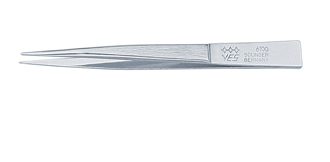 Пинцет имеет острые кончики, что позволяет легко захватывать одиночные волоски, не повреждая кожу. Пинцет изготовлен из высоколегированной стали и предназначен для коррекции бровей, удаления волос и заноз.Длина пинцета 8 см.Хранить в сухом недоступном для