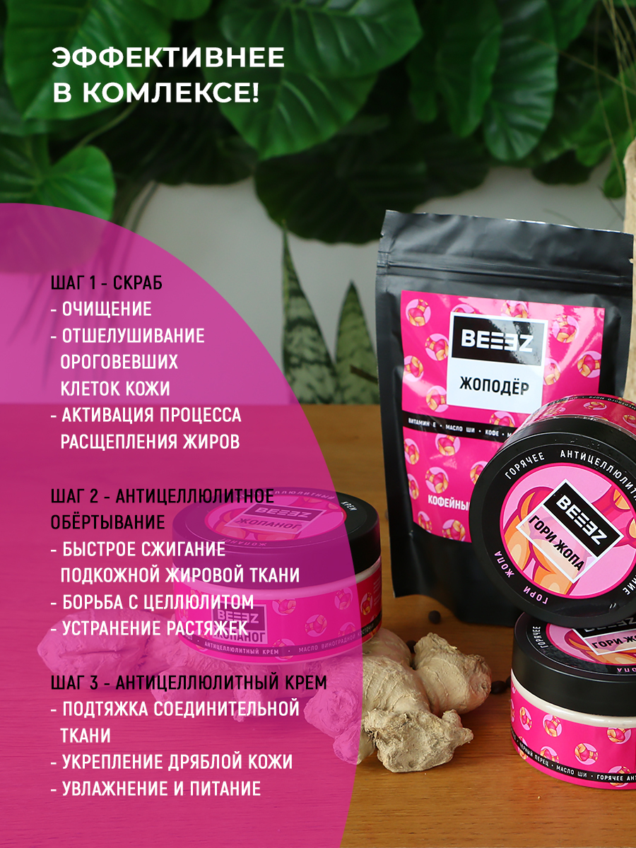 Способ примененияНанести средство на предварительно очищенную и увлажненную водой кожу на проблемных участках тела равномерным густым слоем. Обернуть пищевой пленкой. Для усиления эффекта надеть теплую одежду. По истечению 20-30 минут удалить остатки средства сухой салфет