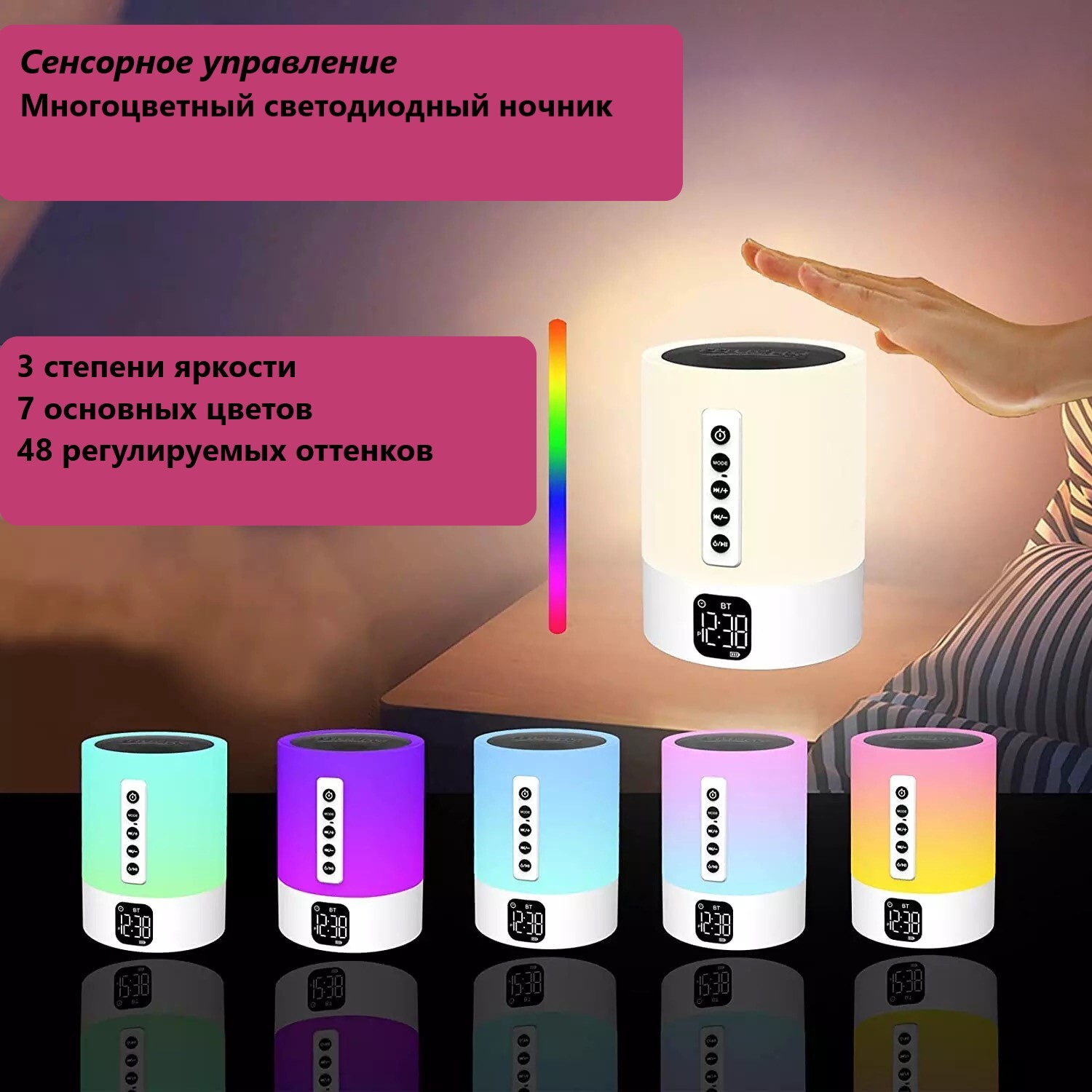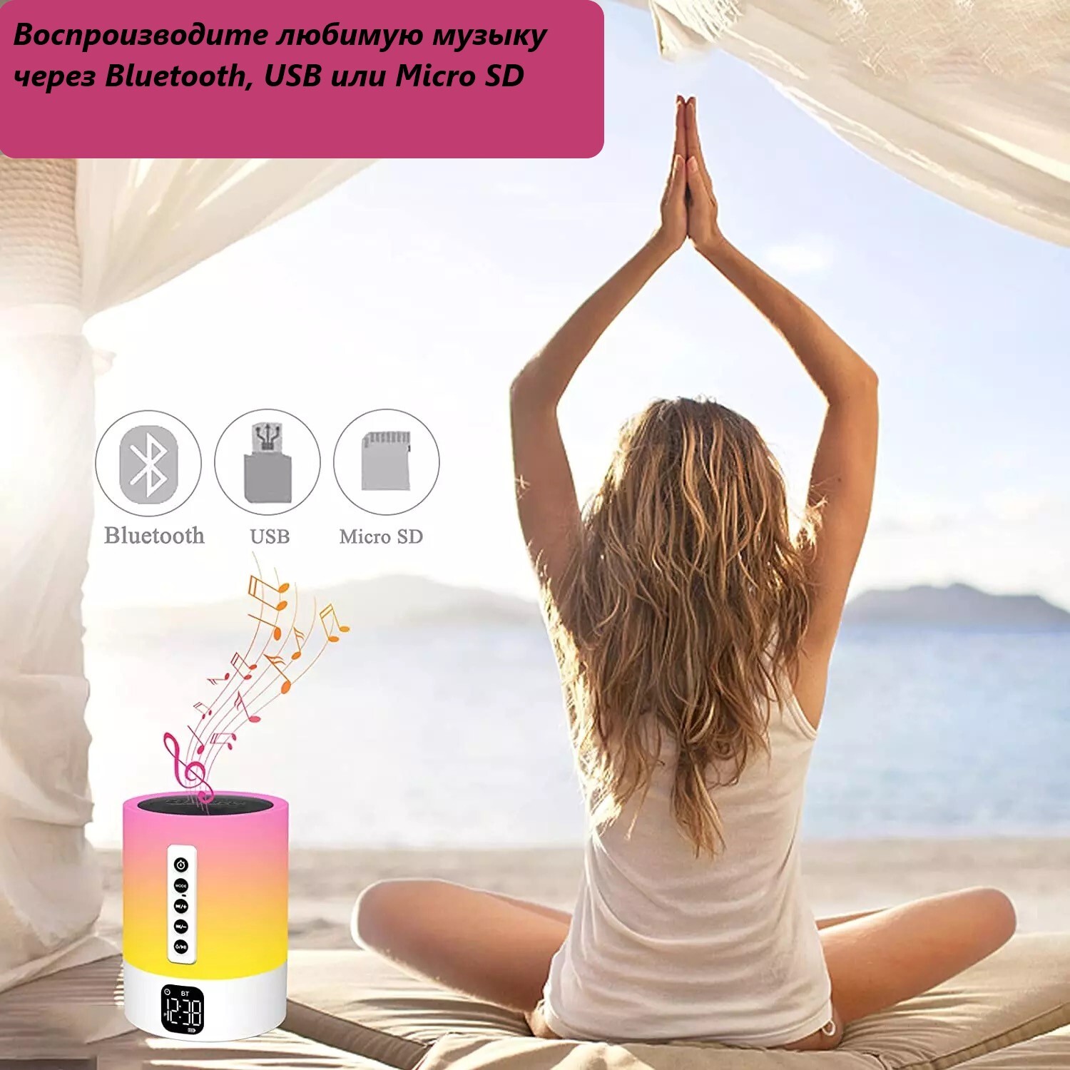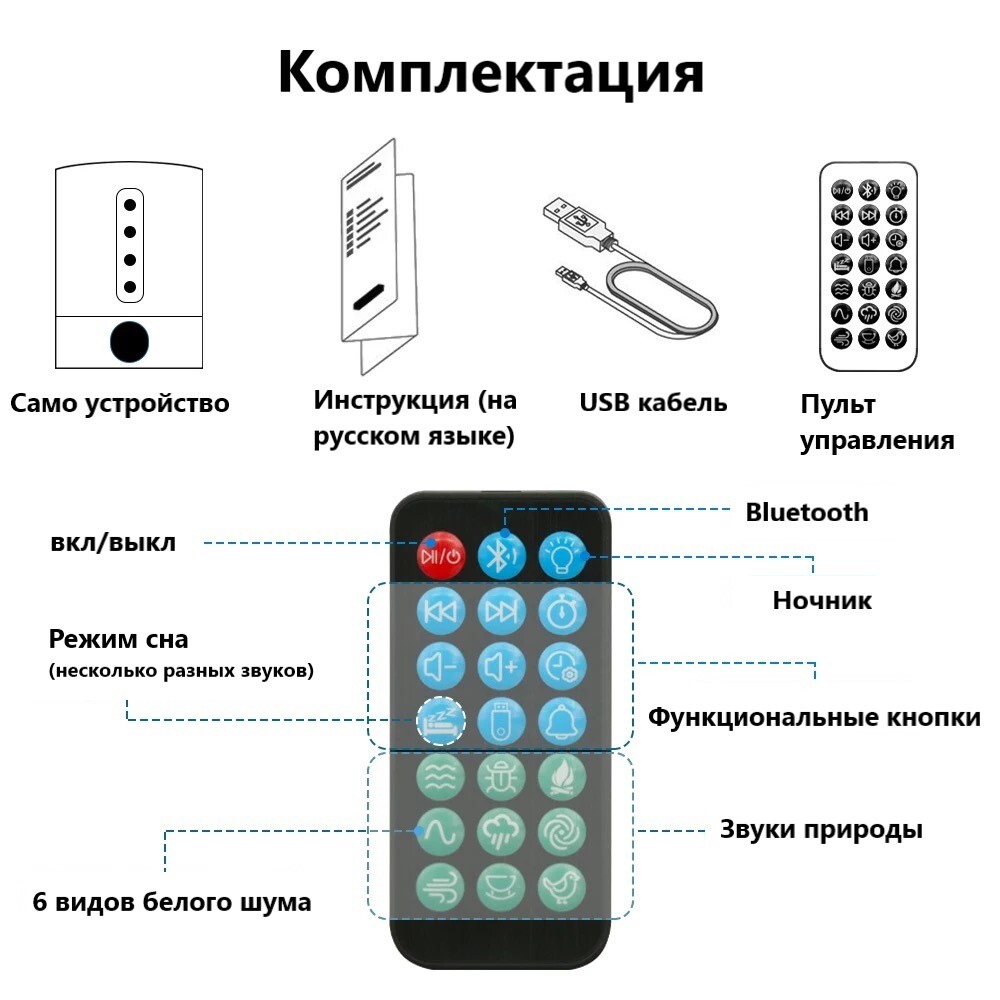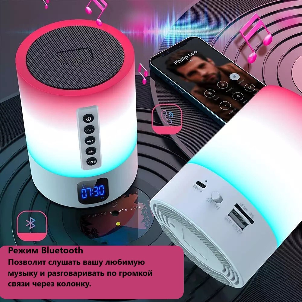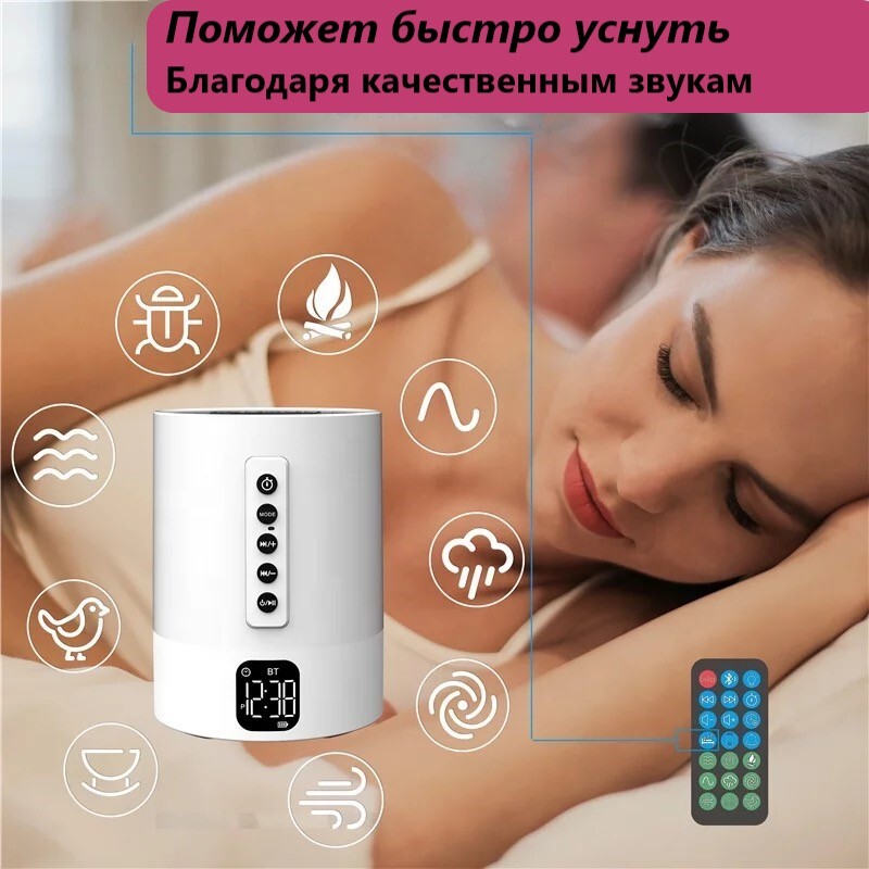 Инновационная новинка 2021 года!Умная колонка, которая объединяет в себе:1. Генератор белого шума2. Портативную колонку с сенсорным управлением3. Прекрасный ночник со множеством цветов4. Цифровые часы-будильник5. Возможность принимать звонки в режиме гром