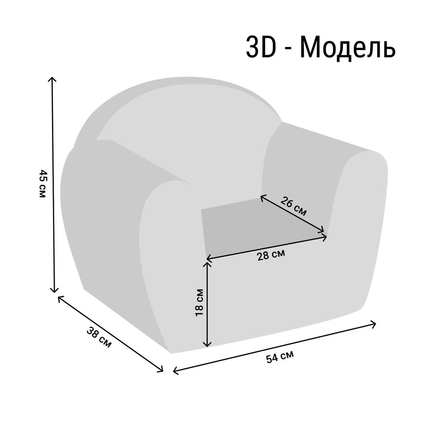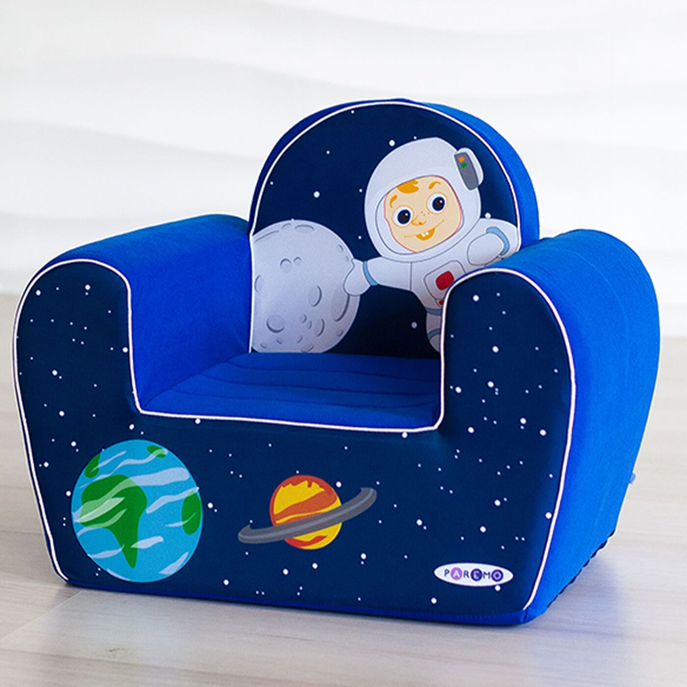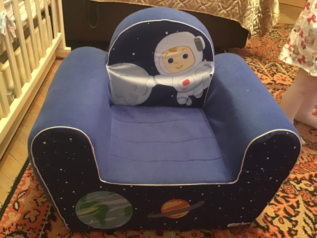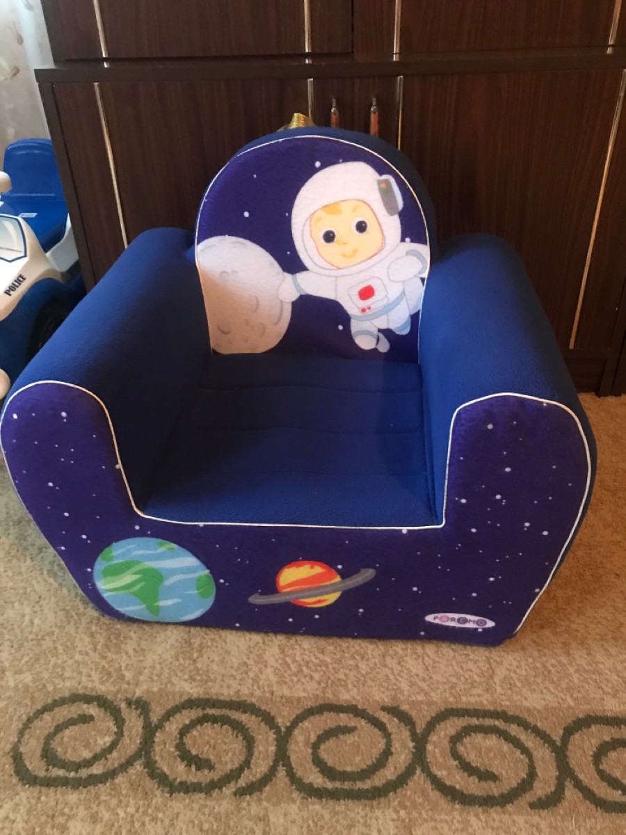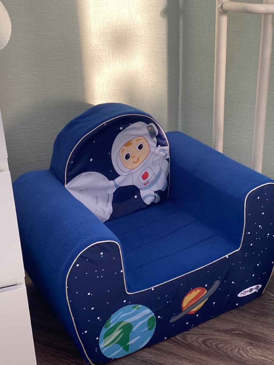 ВНИМАНИЕ! Нюансы цветопередачи полностью зависят от настроек Вашего персонального компьютера.Цвет: темно-синий.Размеры детского кресла Космонавт (ДхШхВ): 38 х 54 х 45 см.Высота от пола до сидения: 18 см.Размеры сидения (ДхШ): 28 х 26 см.Размеры с упаковко