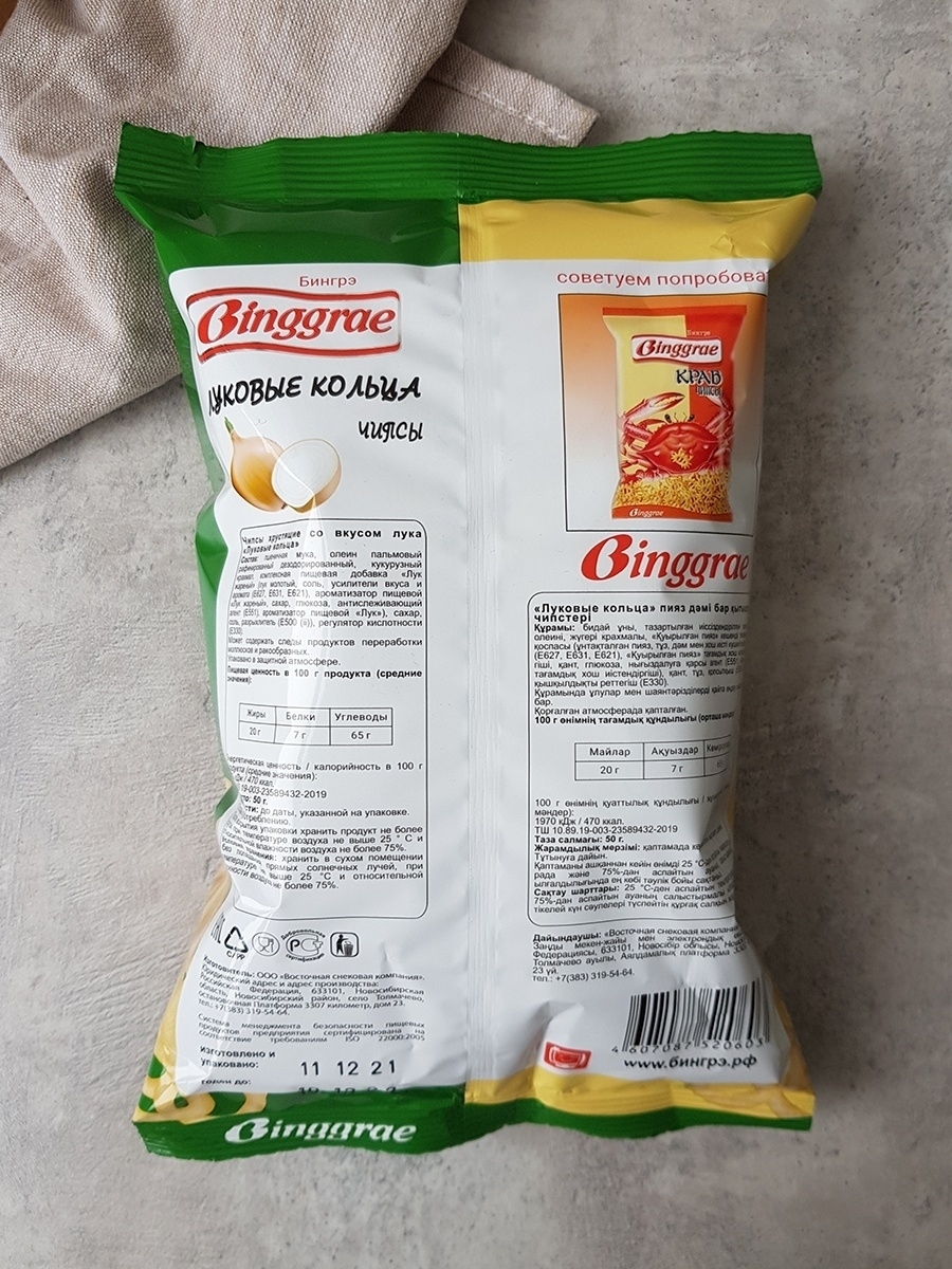 Условия хранения:Хранить в сухом прохладном месте.Состав:лимонная кислота, крахмал кукурузный, натрия гидрокарбонат, ароматизатор, соль, сахар, глюкоза, мука пшеничная, пальмовый олеин, эмульгатор е551, ароматизатор лук, лука порошок, е631, е627, усилител