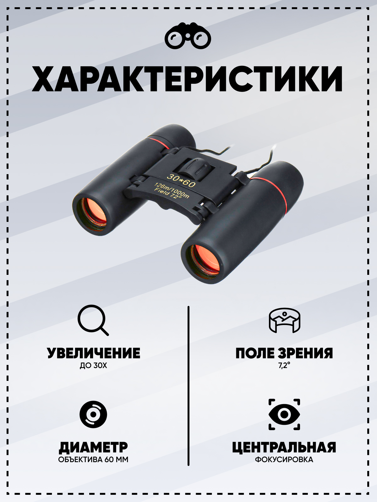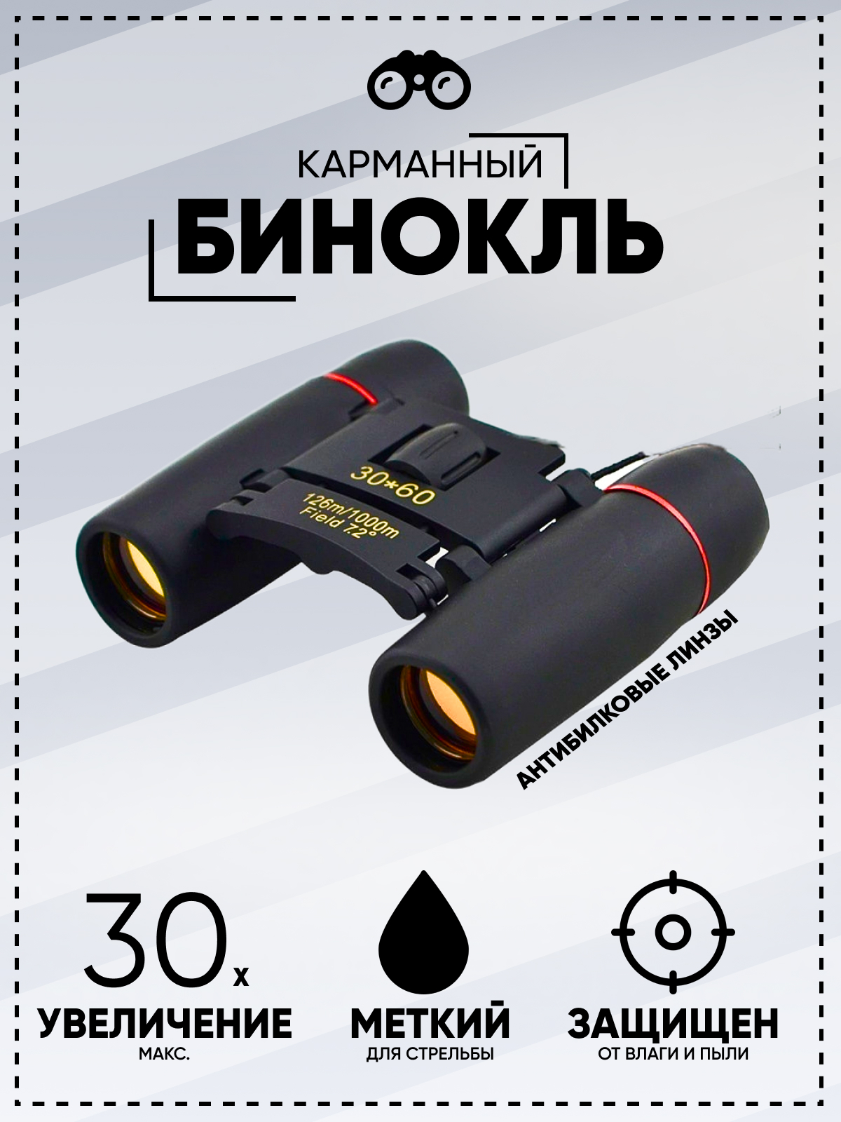 Отлично подойдёт для походов, охоты, рыбалки. Корпус выполнен из ударопрочного пластика и прорезинен для удобного хвата. Увеличивает в 30 раз. Размеры в сложенном виде 90 х 60 х 40 мм