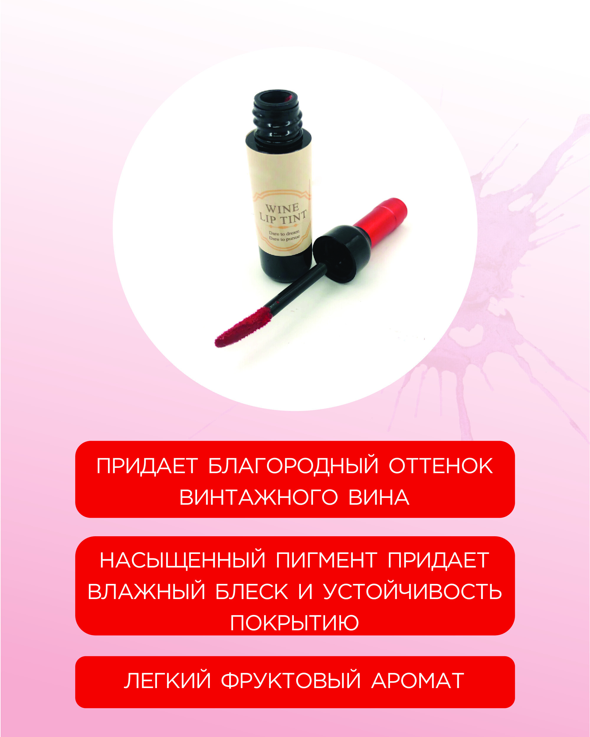 Тинт помогает сделать губы более сочными и яркими. Средство обладает большой стойкостью - в течение многих часов можно не переживать за внешний вид своих губ. Стойкий тинт, разработанный на основе экстракта красного вина, поможет создать красивый и эффект