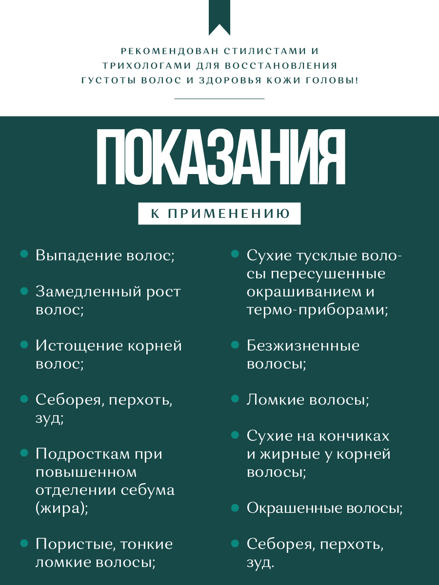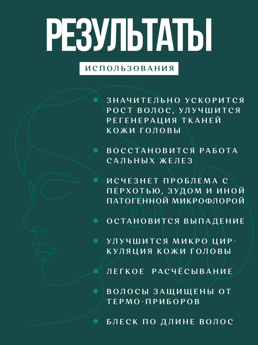 ЭффектВосстановление, Блеск, Разглаживание, Легкость расчесывания, Лечение кожи головы, От перхоти