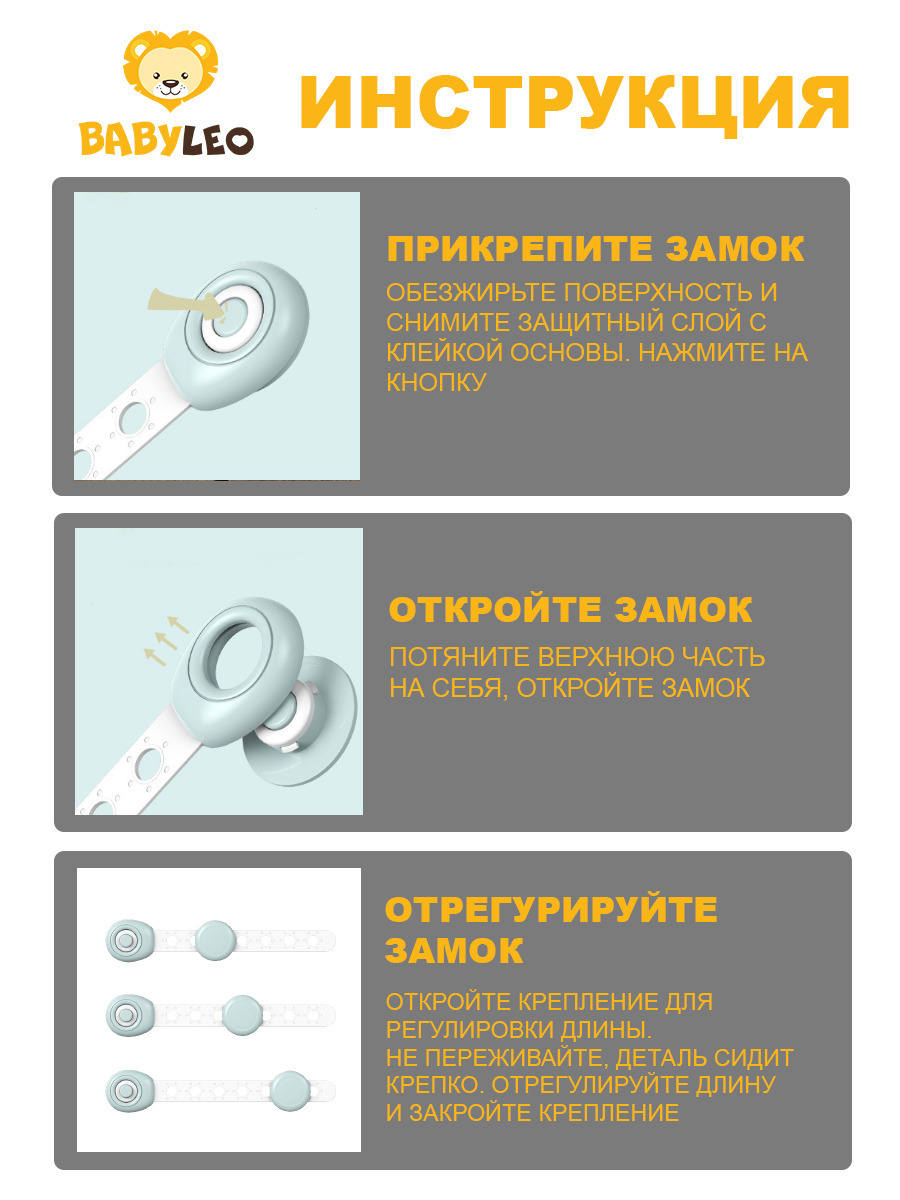 Комплектация:Детский замок - 6 шт.Описание:В тот момент, когда ребенок начинает самостоятельно передвигаться по дому, для родителей наступает крайне неспокойное время: опасные предметы, острые углы, все бьющееся теперь нуждаются в особом внимании. Необход