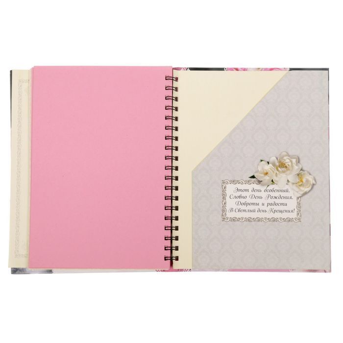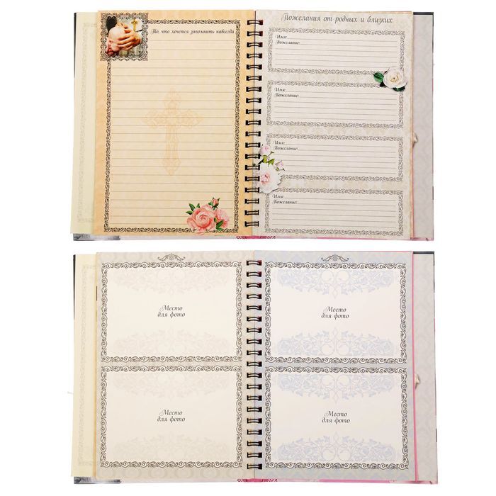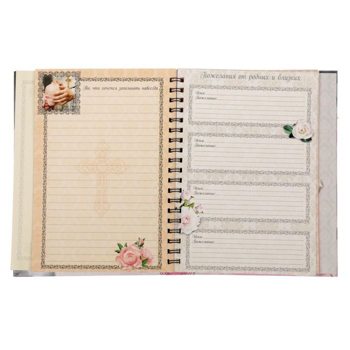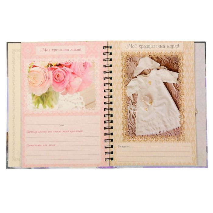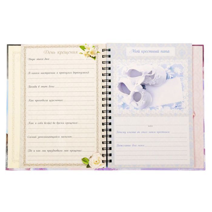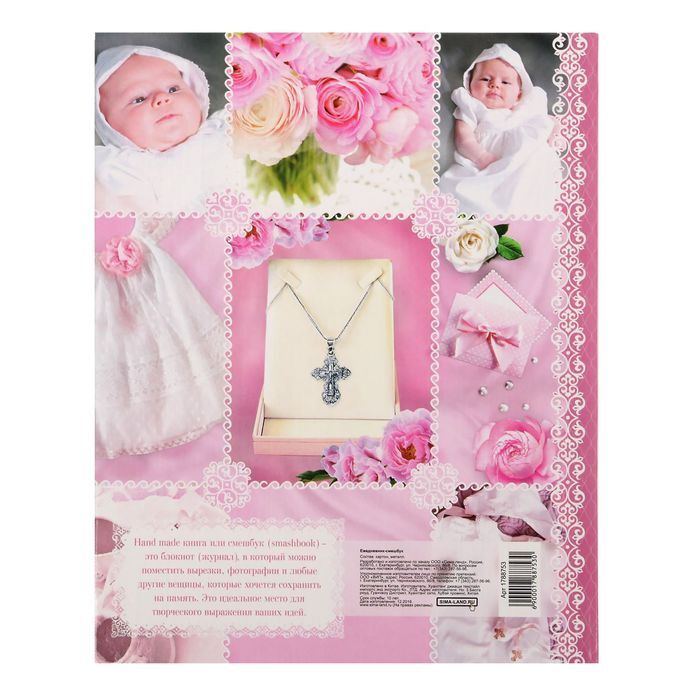 Блокнот-смешбук — уникальный блокнот, который позволит сберечь память о крещении малыша! Он бережно сохранит фотографии и трогательную информацию о вашей крошке, милые пожелания родных, заметки родителей и многое другое!Состав:* дизайнерские страницы для