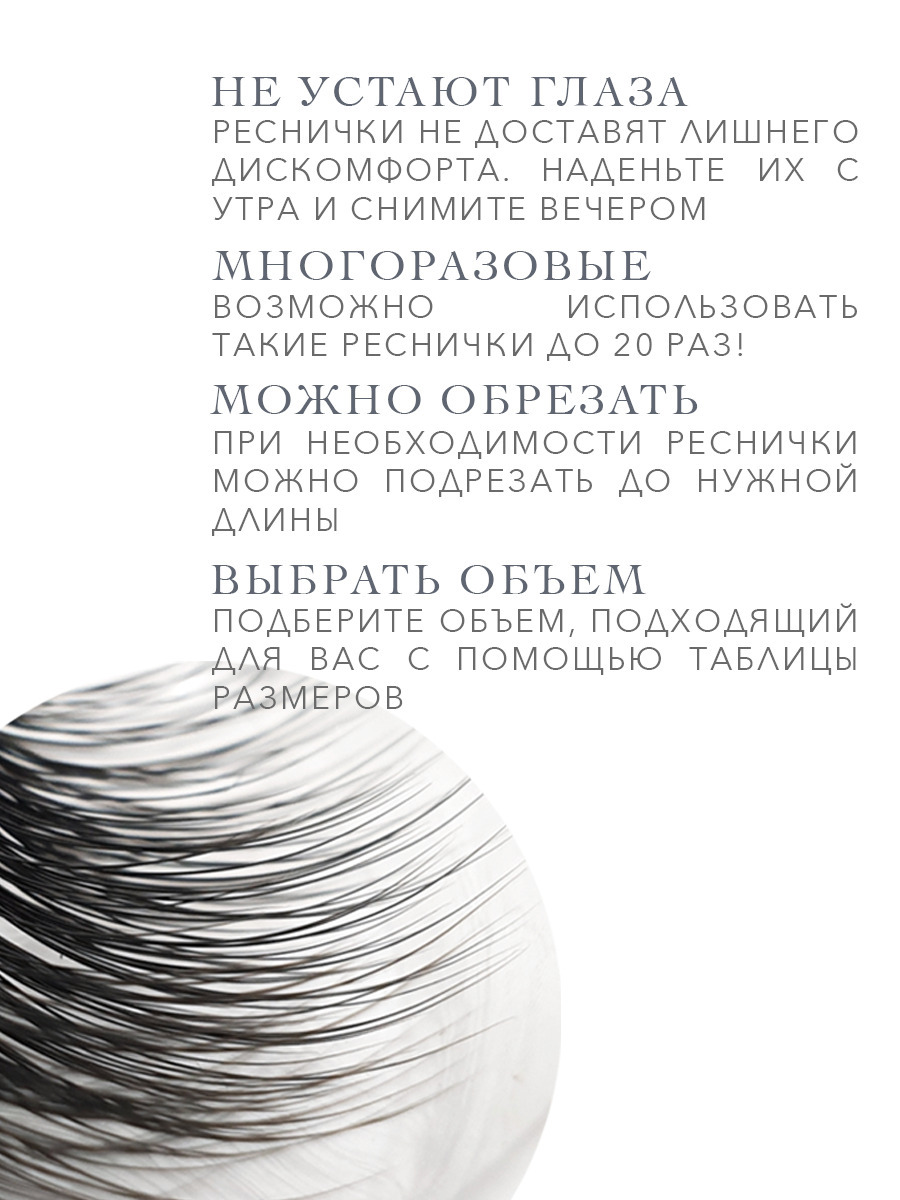 Накладные ресницы в современном мире - это самый быстрый и удобный способ нарастить реснички.? Они идеально смешаются с вашими ресницами и придадут объем.? Можно подровнять под необходимую длину с помощью ножниц.? Подходят для многоразового использования