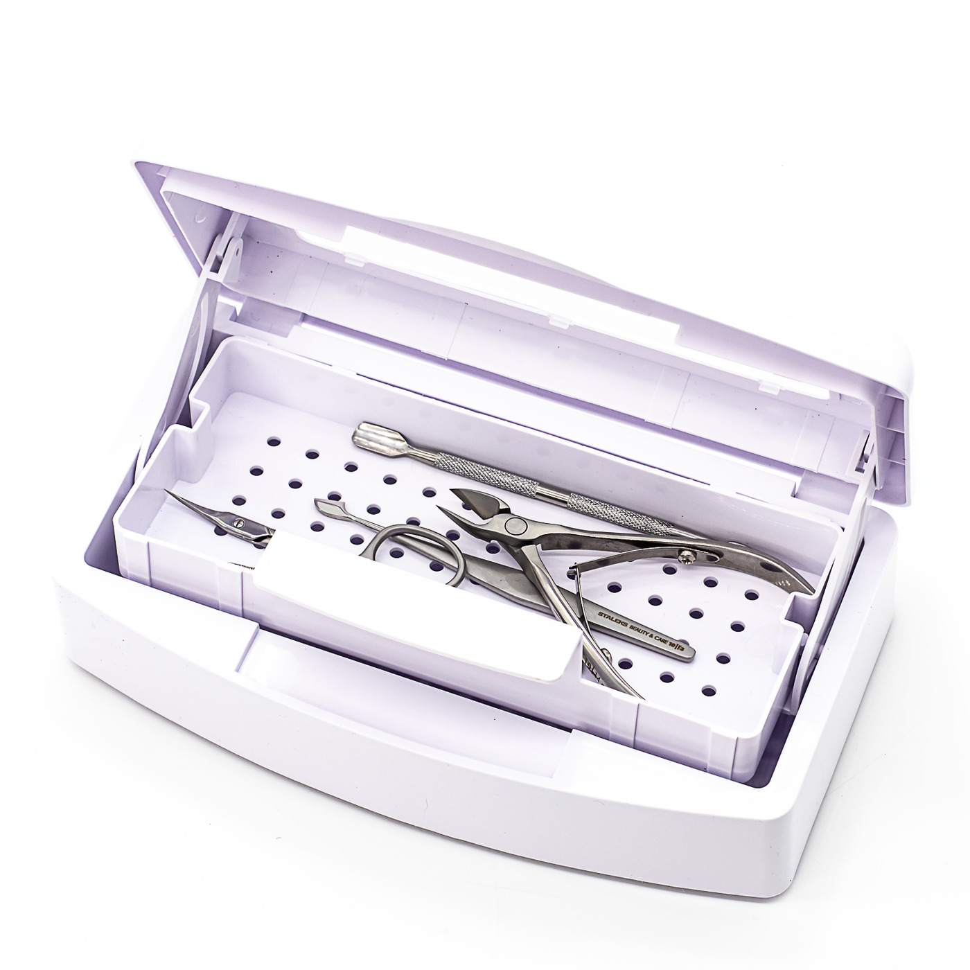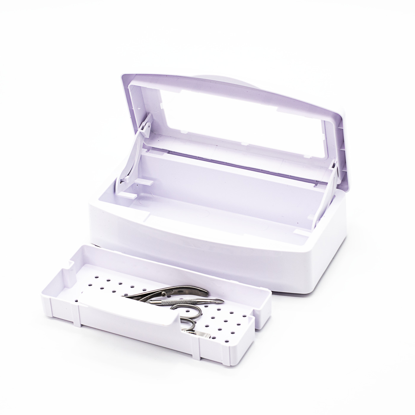 Пластиковый контейнер для стерилизации используется для дезинфекции маникюрного и педикюрного инструмента.Бокс для стерилизации очень прост в применении: в емкость налить специальное средство, в которое положить инструменты и закрыть крышку.Способ примене