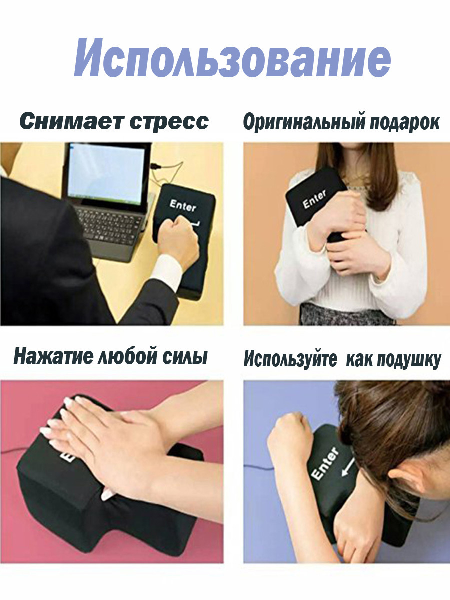 Подушка - кнопка антистресс Enter c USB - входом для офиса и дома - это многофункциональная игрушка антистресс , которая поможет вам вернуть спокойствие и справиться с суетой во время рабочего дня.Используйте по желанию:- Когда вы испытываете стресс или б