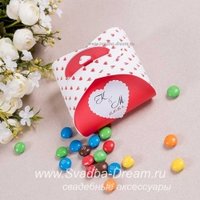 Бонбоньерка квадратная "Ленточка в горошек" выполнена в виде квадратной коробочки, оклеенной красивой фактурной бумагой бордового цвета. Декорирована красной атласной ленточкой и бантиком в горошек. Внутрь можно положить конфеты…