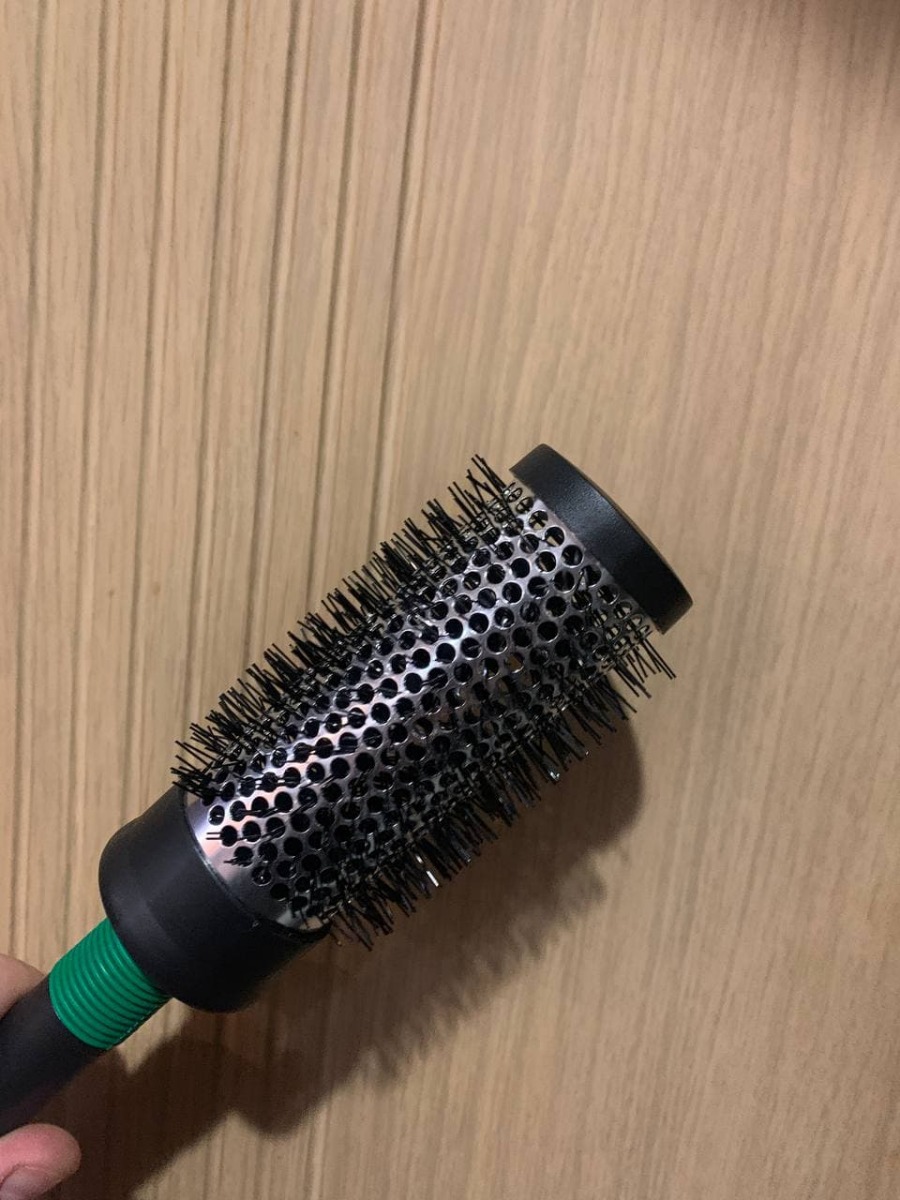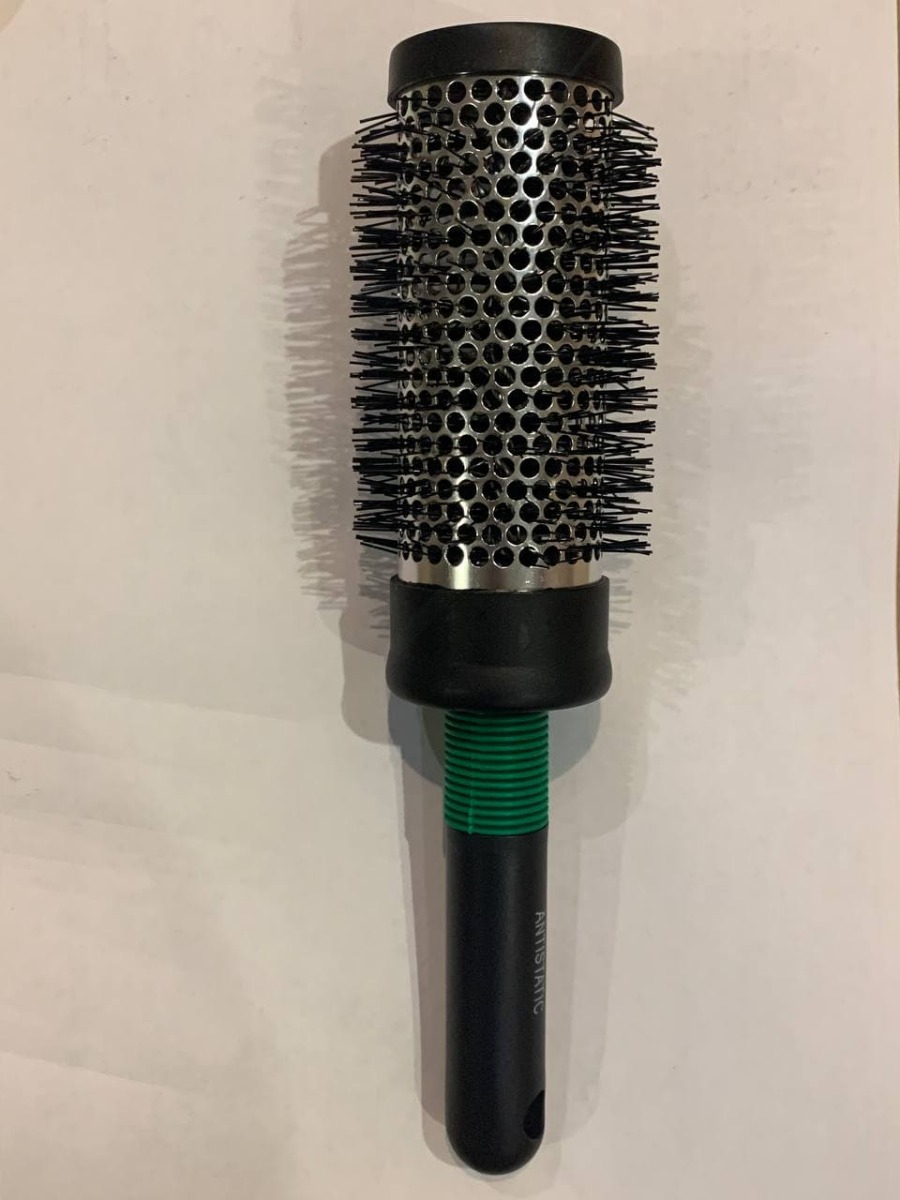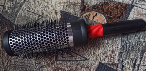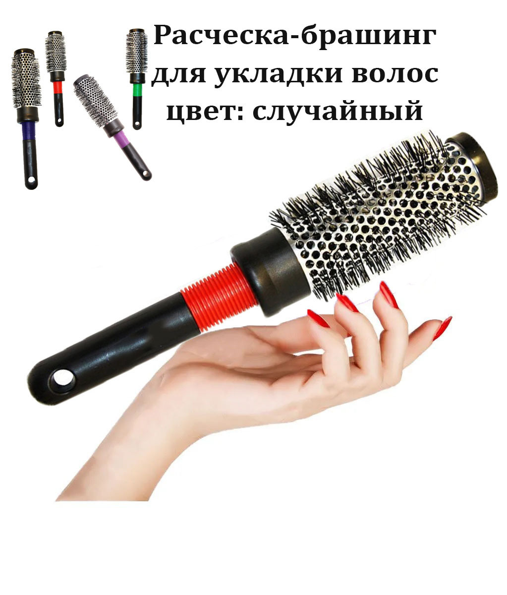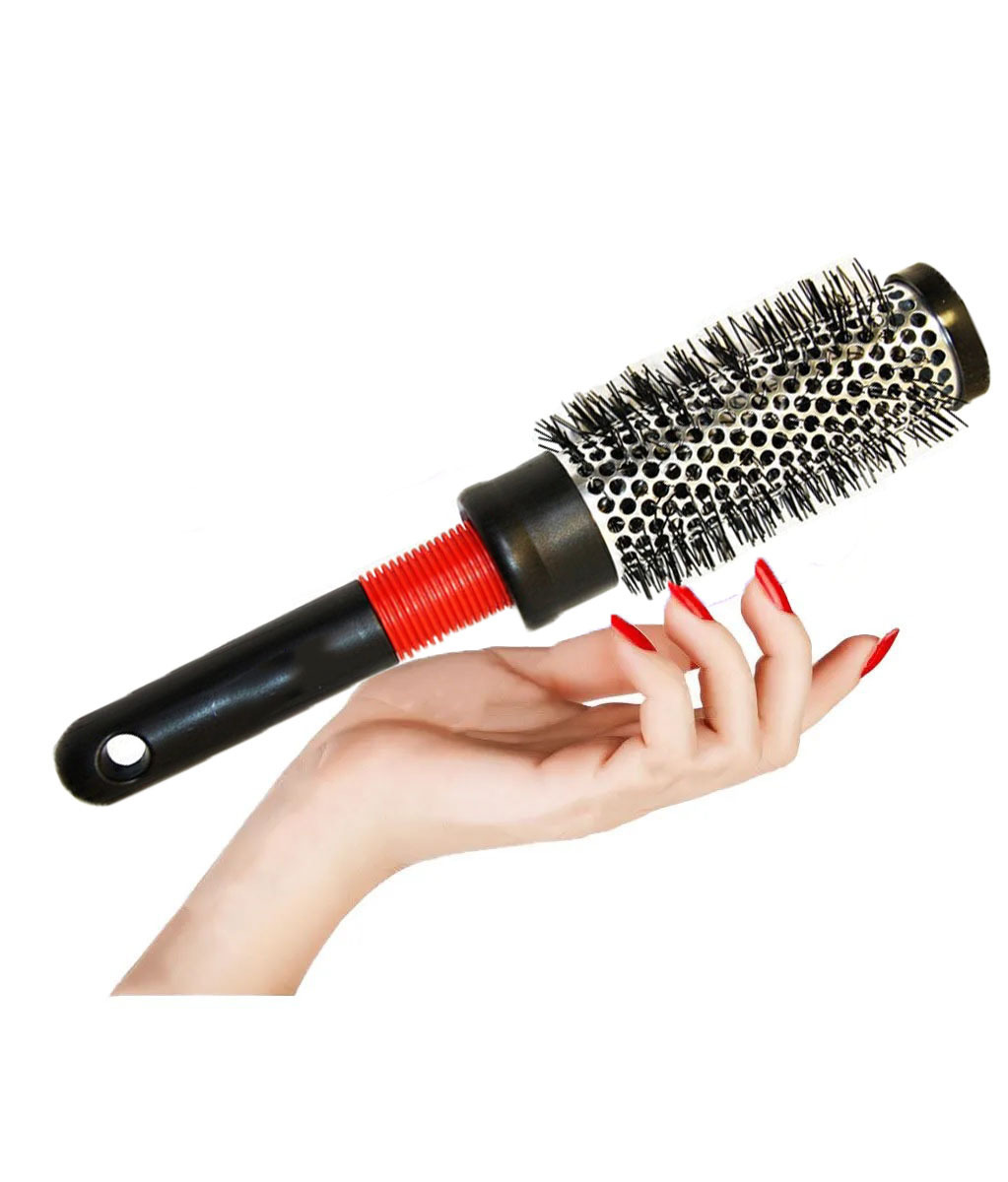 Термобрашинг с ионно-керамической поверхностью и штифтами из термостойкого нейлона, что обеспечивает равномерное нагревание, одновременно защищает волосы и снимает статическое электричество. Удобная прорезиненная ручка оснащена специальным хвостиком для р