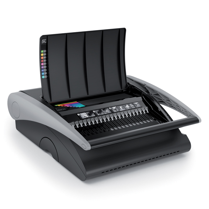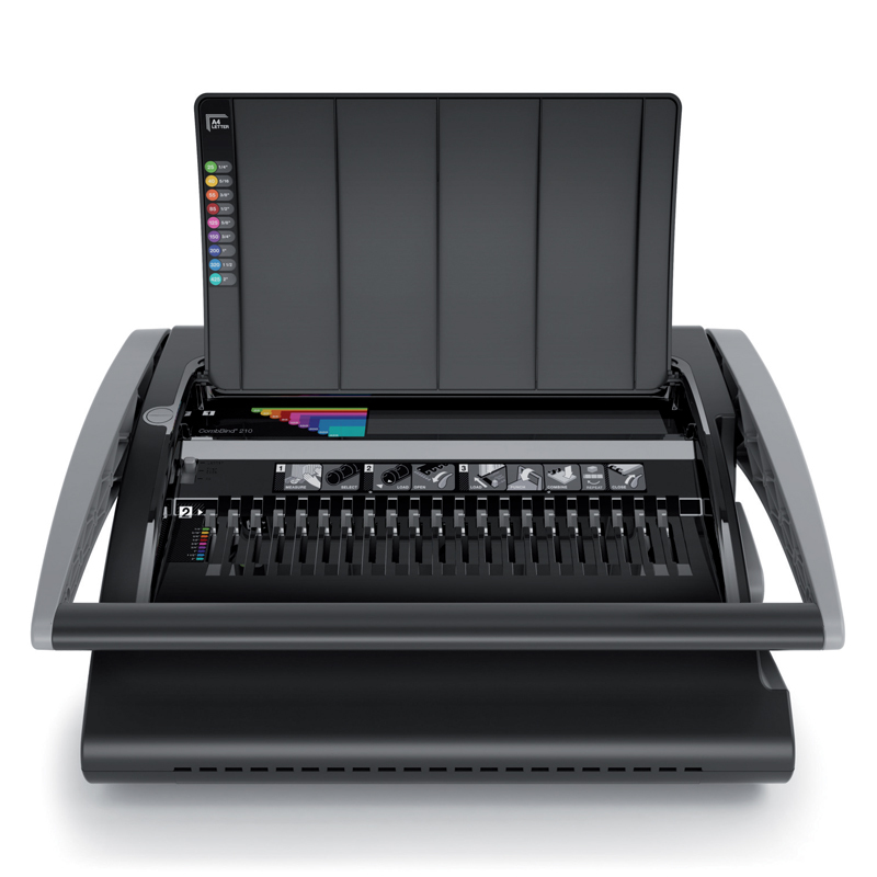 Переплетать стало еще проще. Переплетная машина CombBind C210 идеально подойдет для среднего объема работ и нескольких пользователей. Машина пробивает 25 листов плотностью 80 г/м2 за одну загрузку и переплетает до 450 листов формата A3 (в книжной ориентац