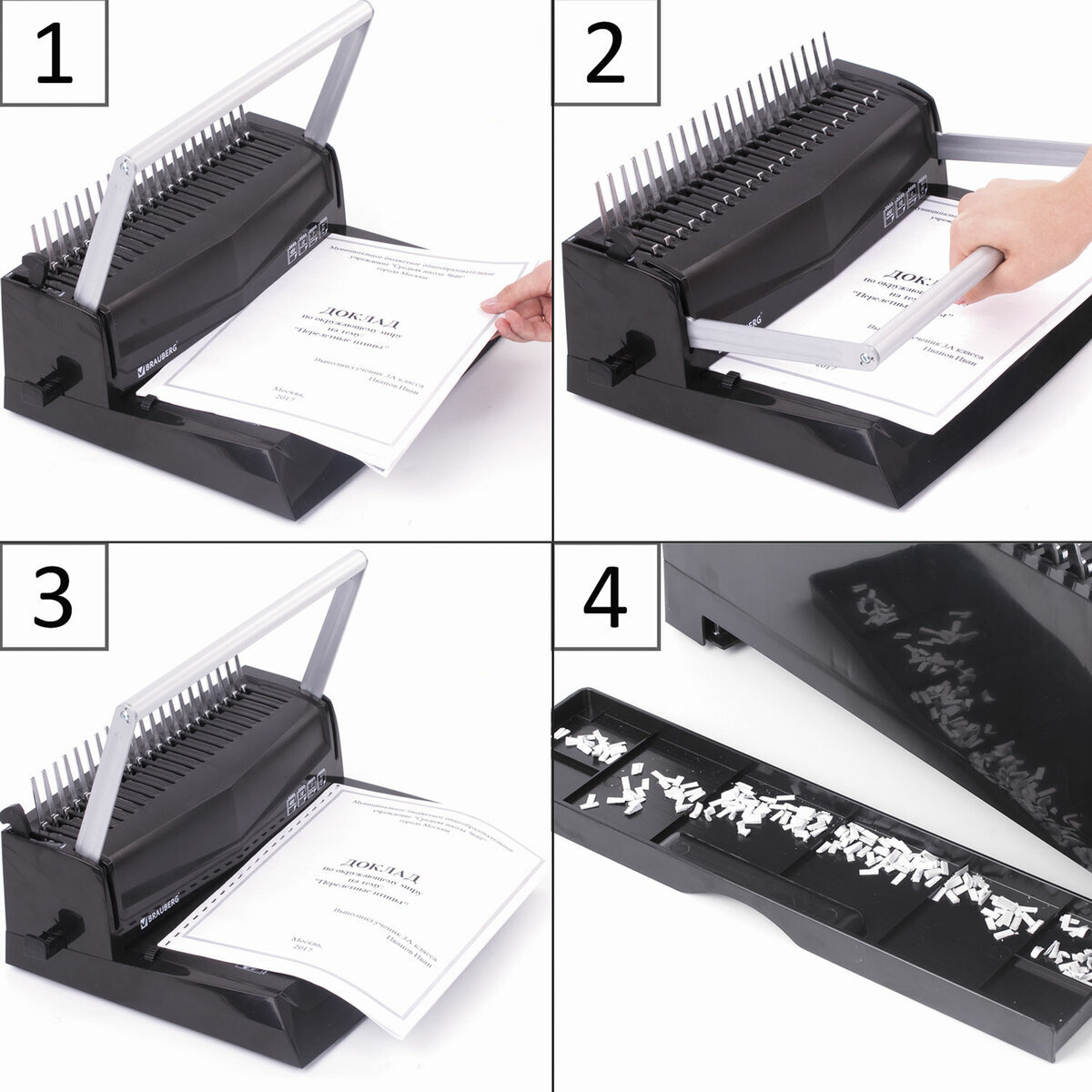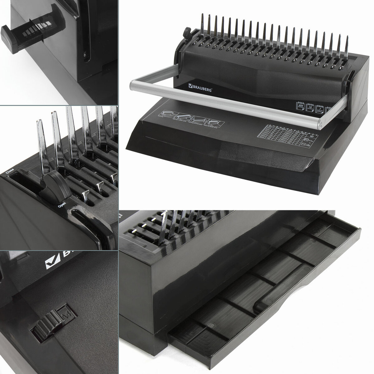 Переплетная машина для пластиковой пружины BRAUBERG "B12" (брошюровщик) идеально подходит для небольшого офиса и дома, где периодически возникает потребность в переплете документов. С ее помощью можно одновременно перфорировать 12 листов плотностью 80 г/м