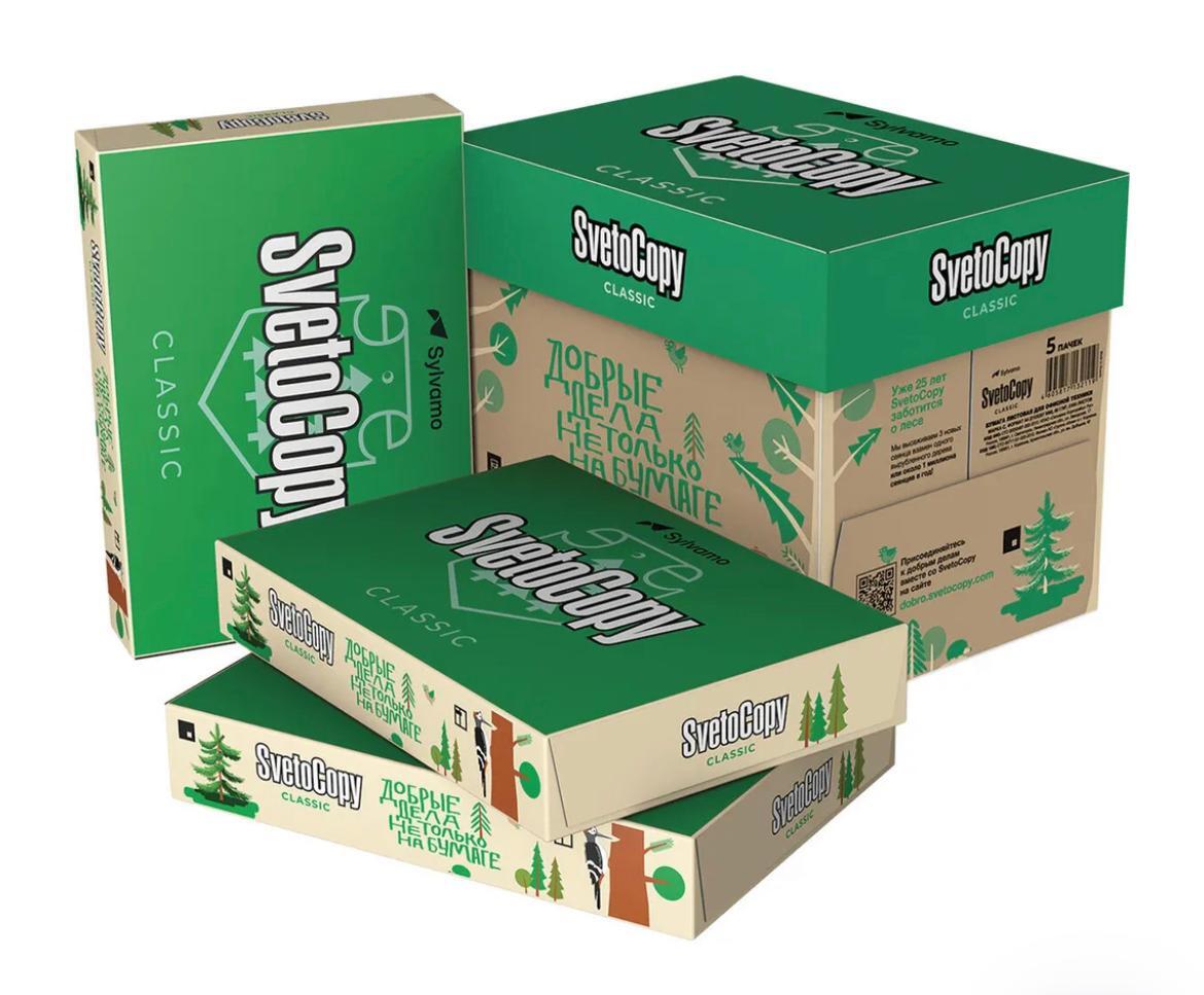 SvetoCopy ECO — универсальная офисная бумага из полубеленной целлюлозы от бренда №1 в категории «Бумага для офиса». Натуральный цвет каждого листа достигается благодаря применению меньшего количества отбеливающих веществ. Уровня белизны 60% (ISO) достаточ