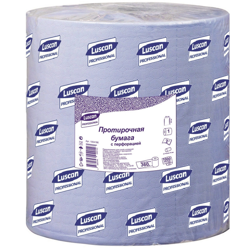 Протирочная бумага в рулонах Luscan Professional W1 2-слойная. Цвет: голубой. 360 метров в рулоне. Количество листов в рулоне: 1000. Преимущества: - Прочная бумага с повышенной впитываемостью для эффективной протирки поверхностей; - Идеально удаляет масло