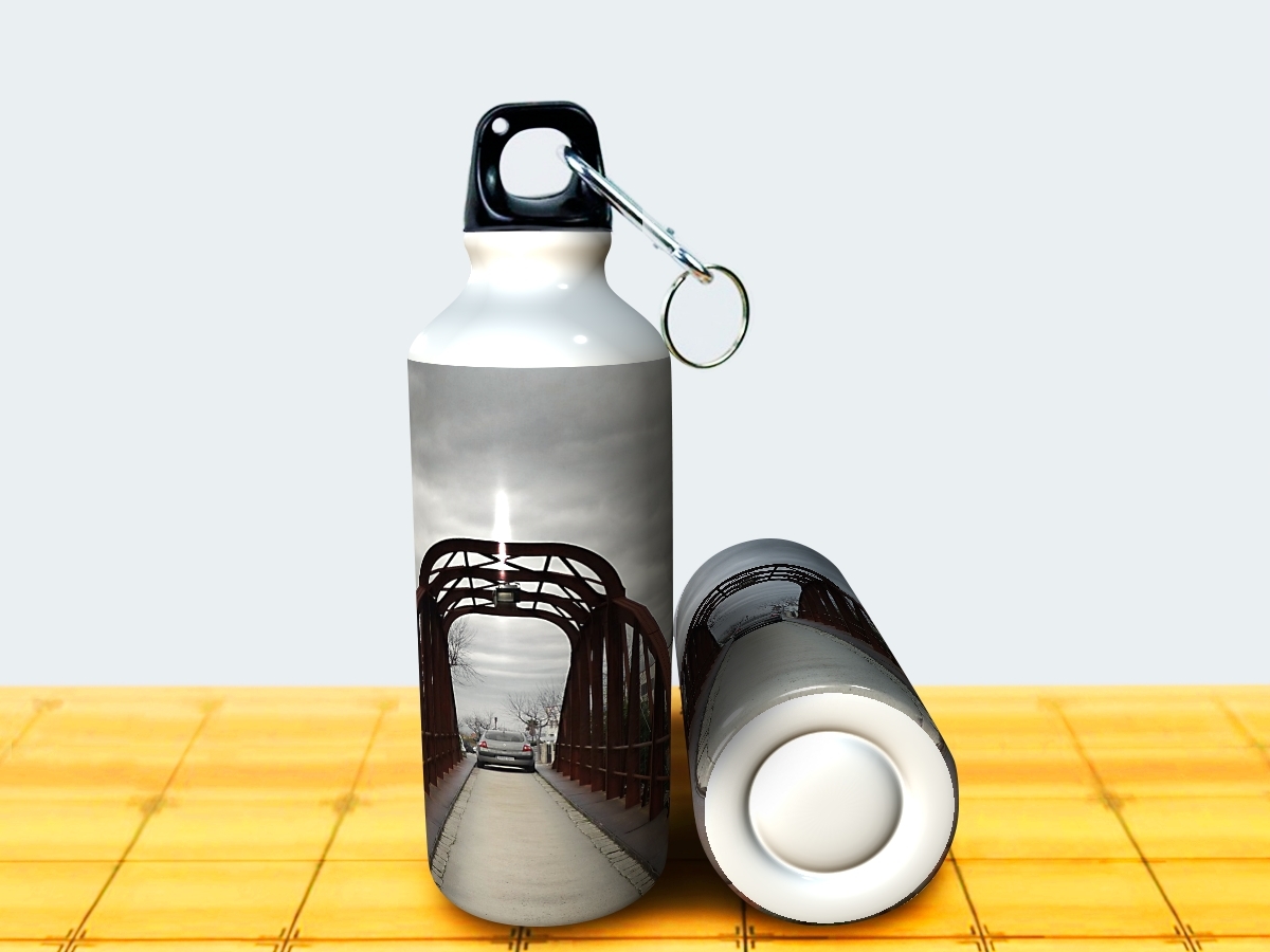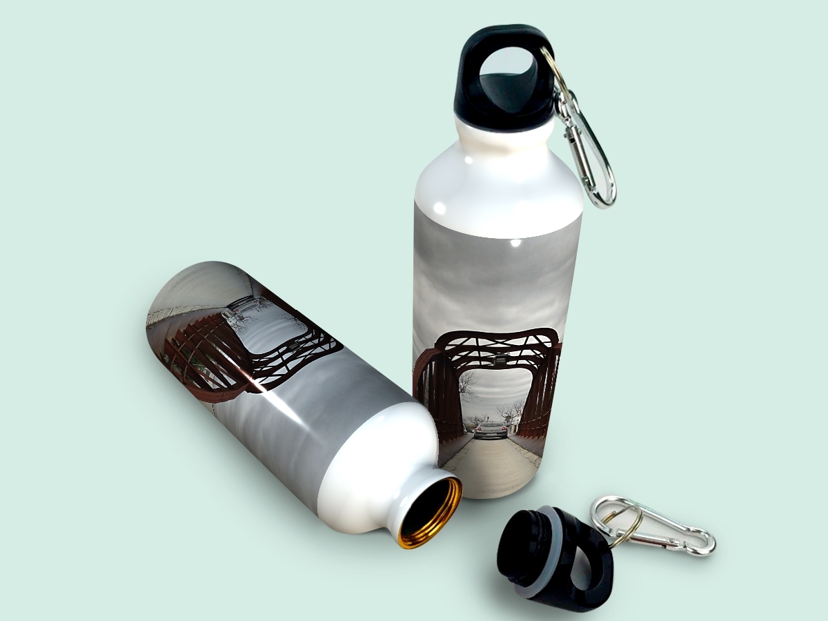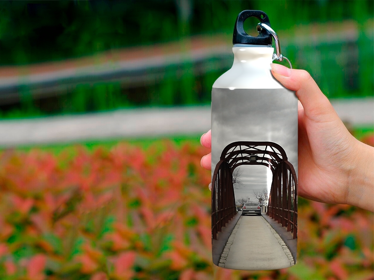 Металлическая спортивная бутылка фляга "мост, железный мост, чугун" для воды 750мл. или 0.75л. Прекрасна подойдет в подарок. В комплект входит карабин для зацепа что позволяет прицепить бутылку в доступном месте. Прочный и легкий металлический корпус наде