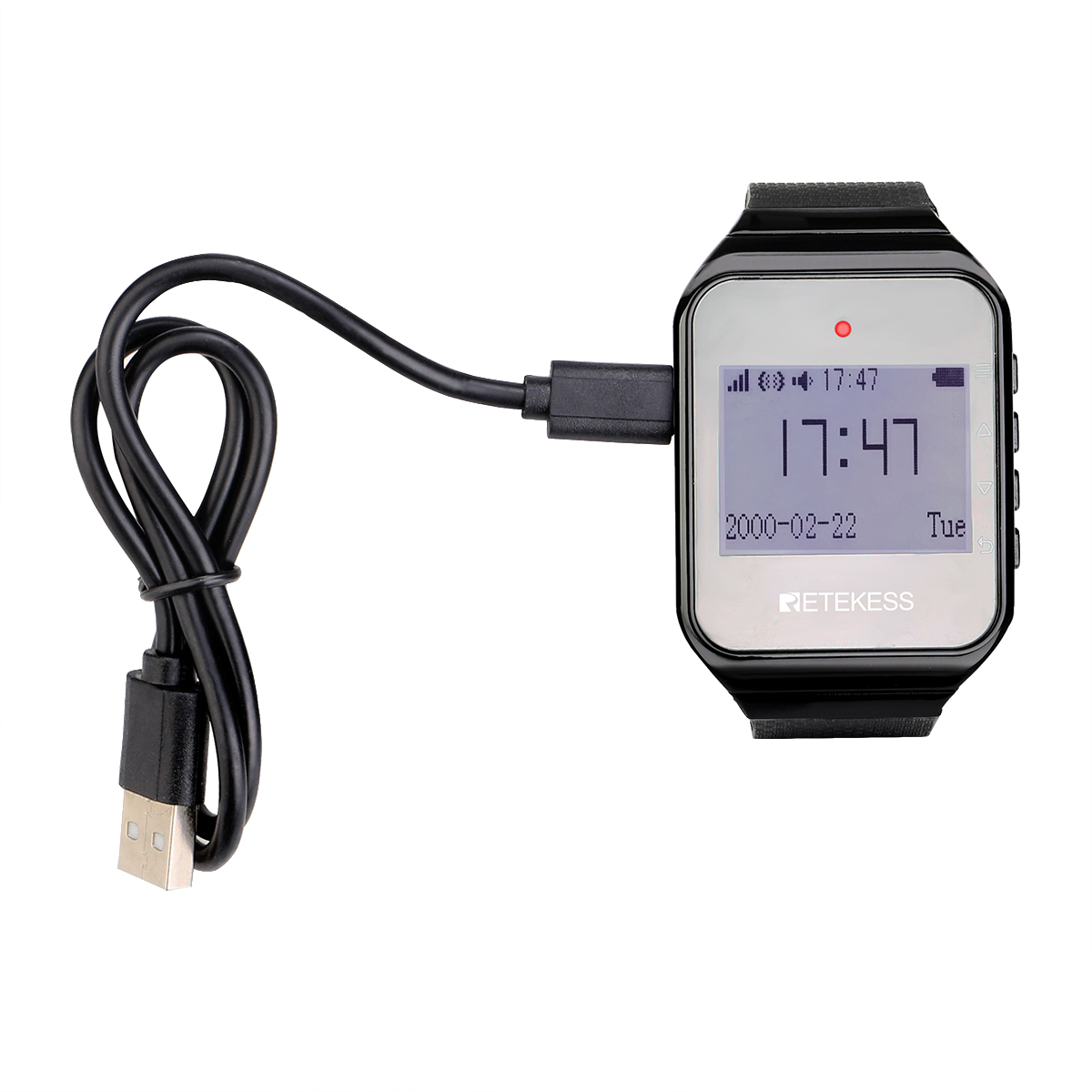Комплектация:1. Часы - 1 шт.2. Магнитный USB-кабель - 1 шт.3. Адаптер питания - 1 шт.4. ИнструкцияОписание:Часы-пейджер Retekess для вызова персонала с русифицированным управлением и защитой от влаги. Могут быть частью простой системы: передатчик посылает