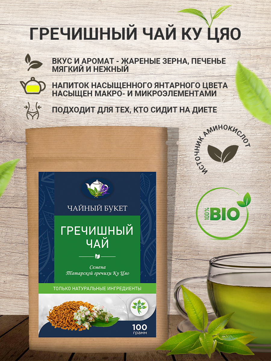 Гречишный чай или чай Ку Цяо не совсем обычный чай.Скорее это настой на татарской чёрной гречихе. От привычной нам гречихи отличается более мягким и нежным вкусом.Напиток насыщенного янтарного цвета насыщен макро- и микроэлементами (железо, магний, хром,