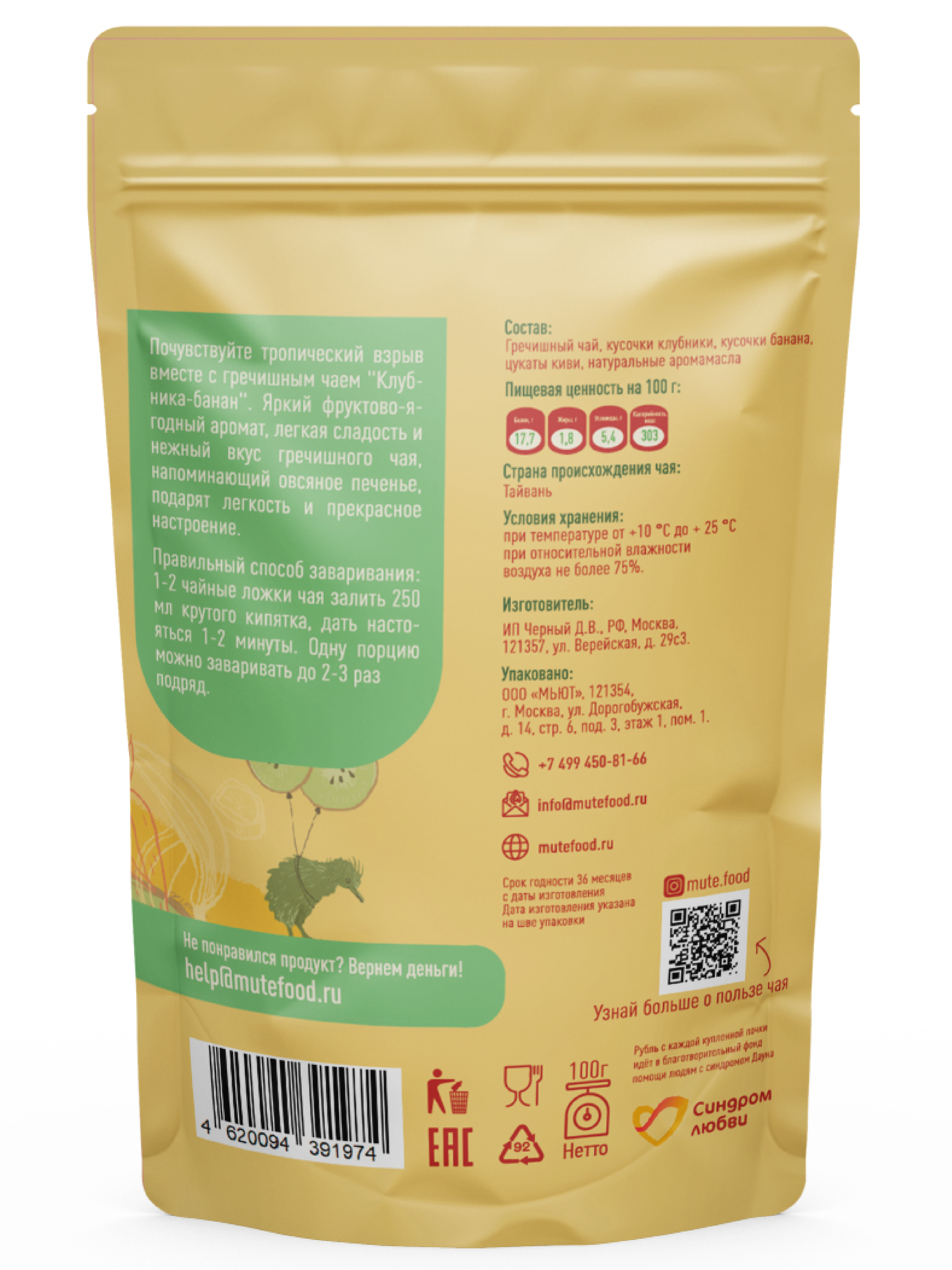 Состав:гречиха татарская, кусочки клубники, кусочки банана, цукаты киви, натуральные аромамаслаУсловия хранения:Хранить в плотно закрытой упаковке в прохладном, темном месте, ограничивая воздействие высоких температур, влажности, солнечного света и постор