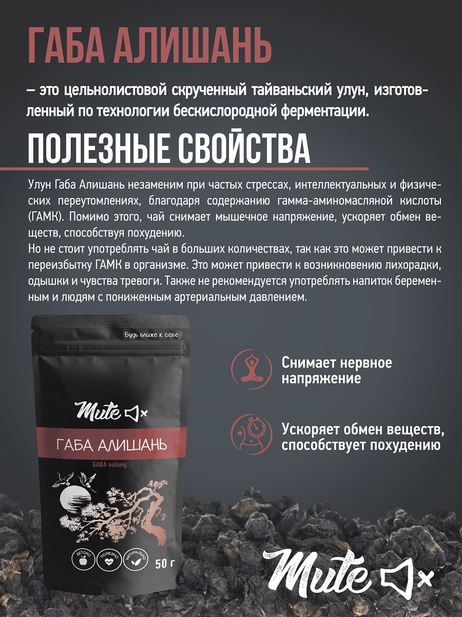 ГАБА (GABA) улун из знаменитого тайваньского района Алишань изготавливают по технологии с ферментацией в анаэробных условиях. При продолжительном отсутствии кислорода, в чае образуется ГАМК (Гамма-аминомасляная кислота), которая участвует в нейромедиаторн