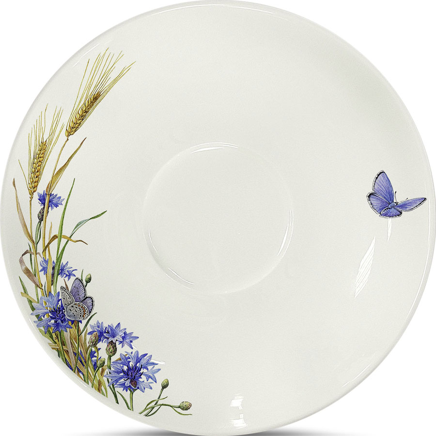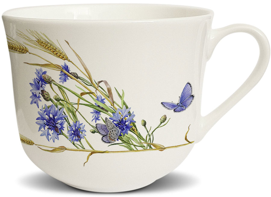 Чайная пара из костяного фарфора. Васильки. Коллекция Славянский букет . Бескрайняя ширь полей, прохлада заливных лугов и звенящая тишина пронизанных летним солнцем лесов собраны талантливыми руками русского художника в нежный букет полевых цветов. Чайна