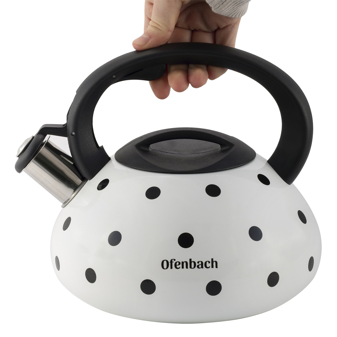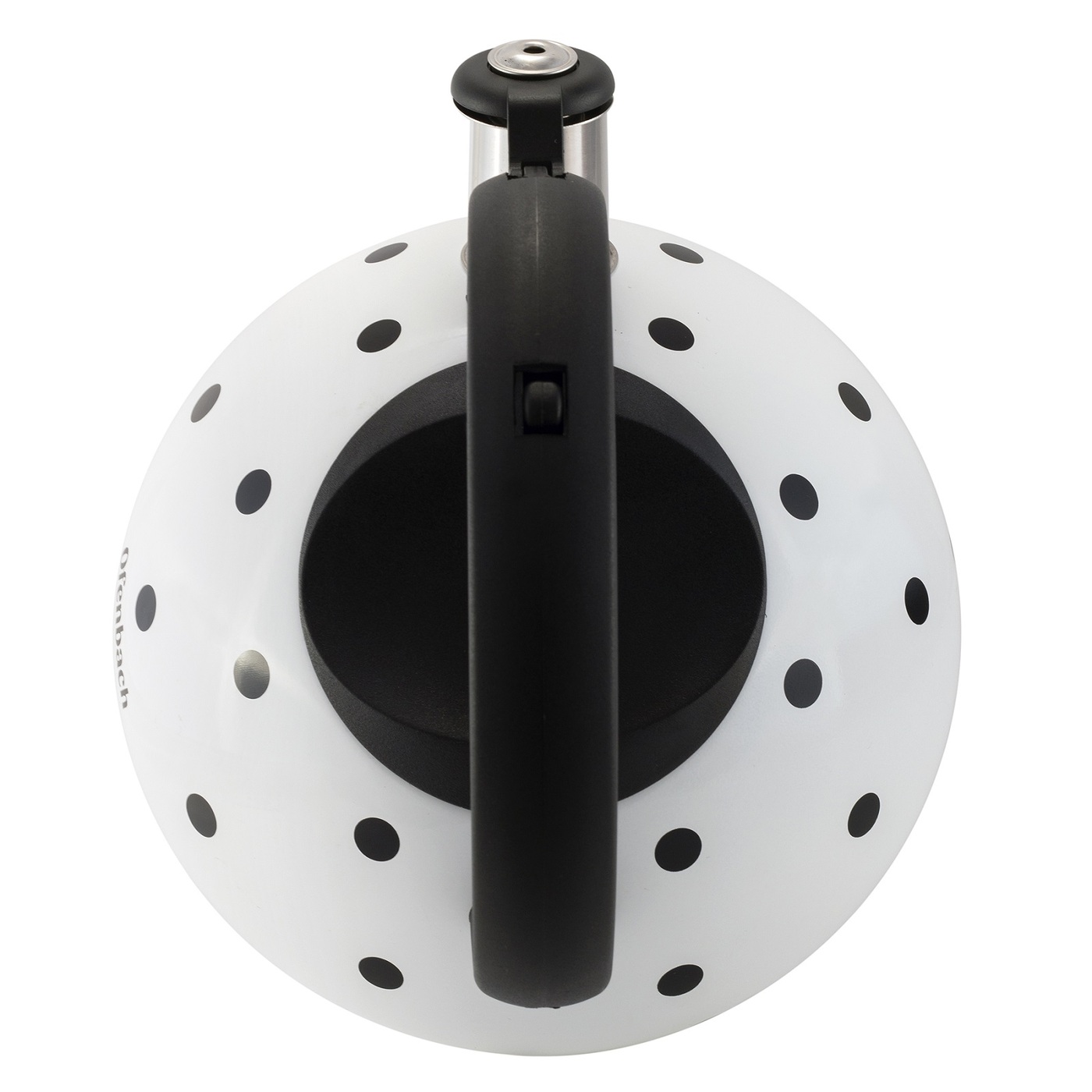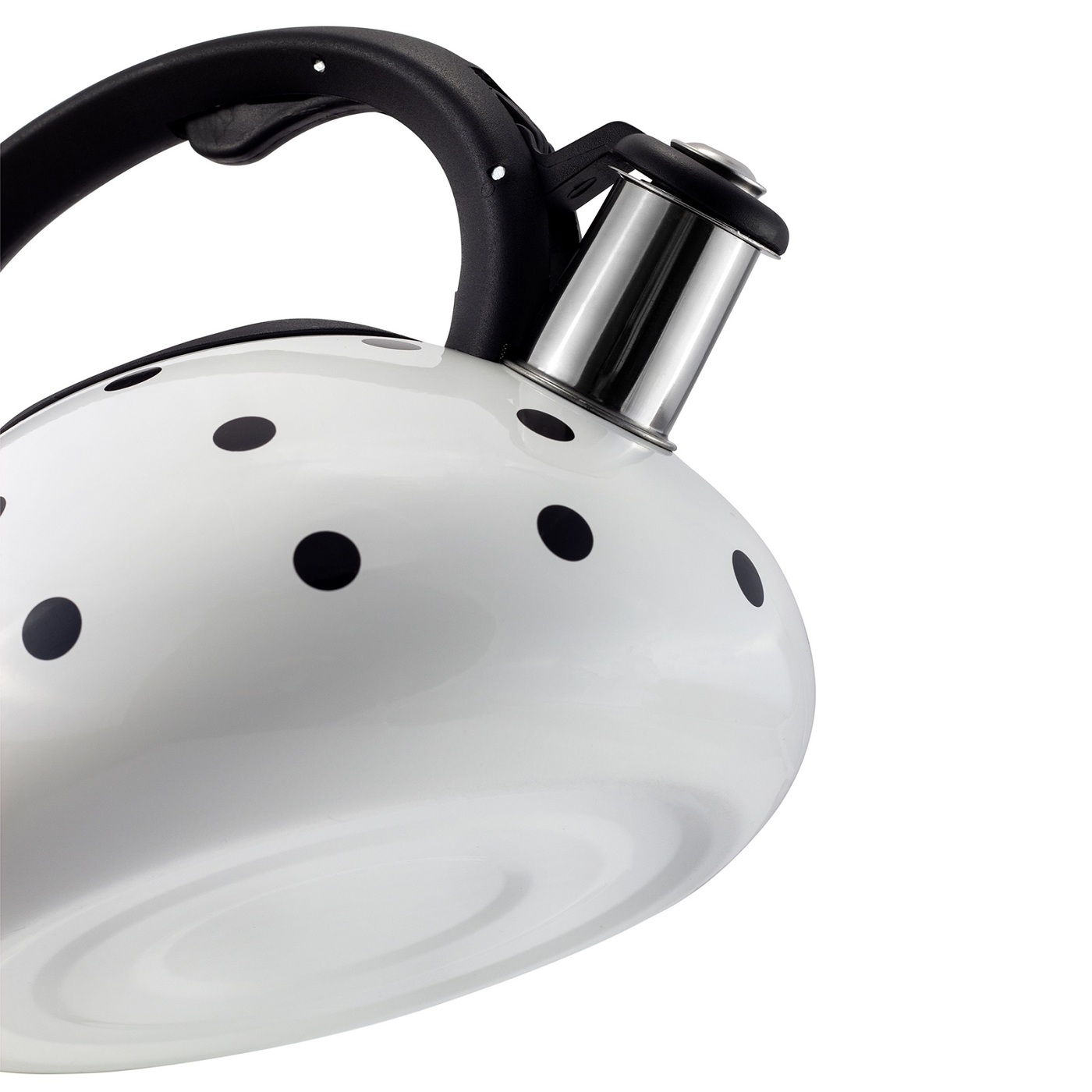 Чайник 2,5л из нержавеющей стали со свистком и ручкой soft touch.Размеры: 19,5*19,5 см. Цвет : белый глянец. Материал нержавеющая сталь, ручка - пластик софт тач. Для всех типов плит, подходит для посудомоечной машины. Для чистки не использовать абразивны
