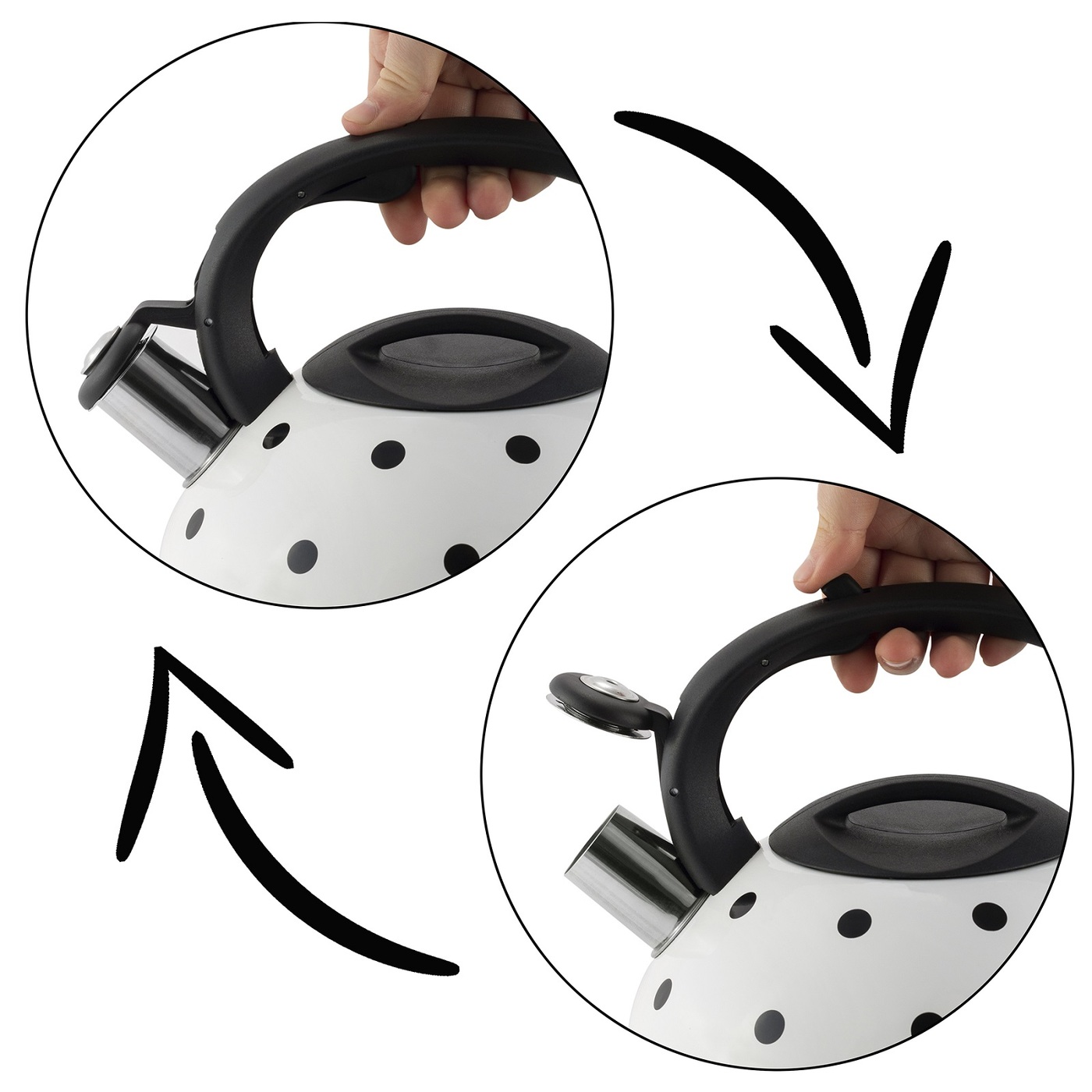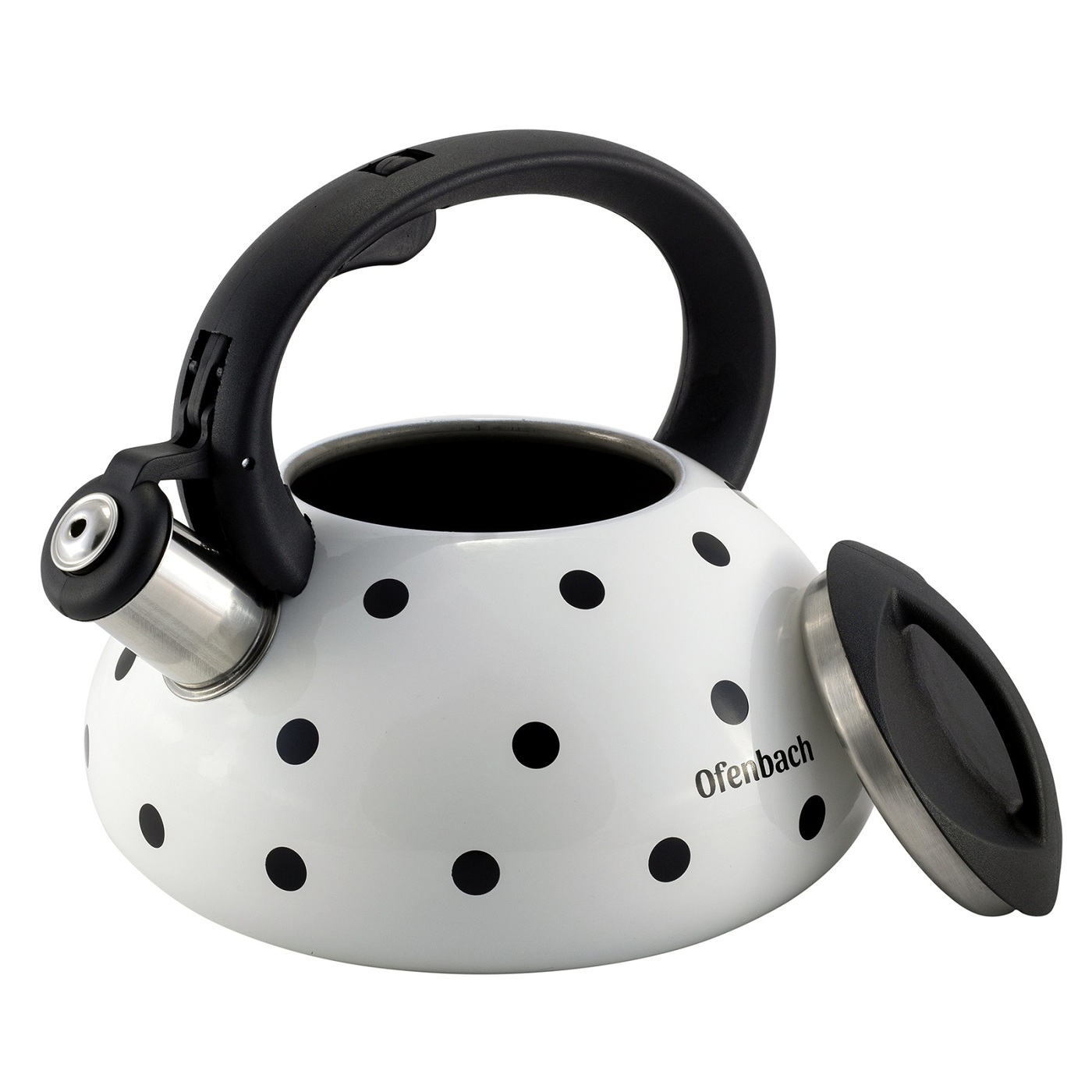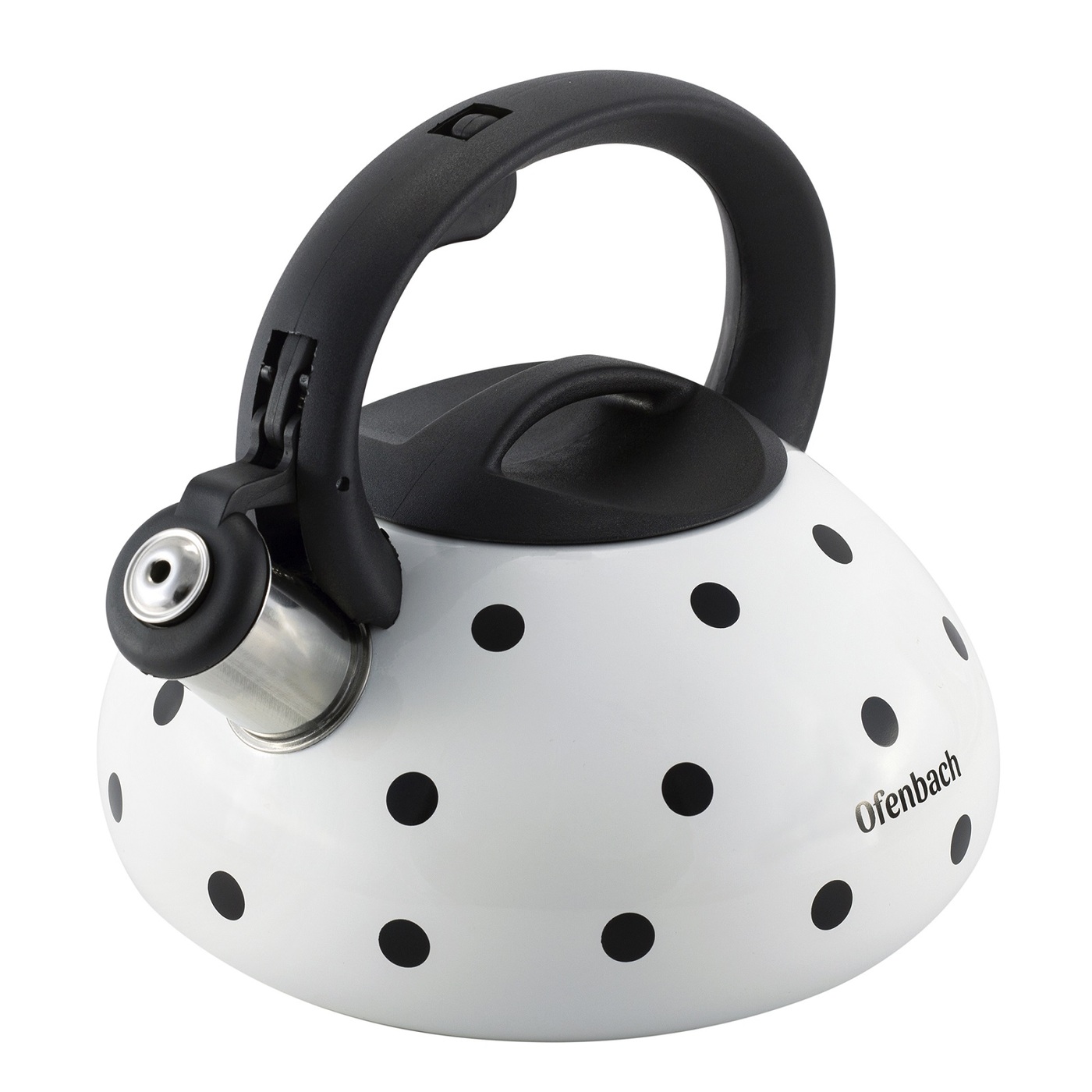 Чайник 2,5л из нержавеющей стали со свистком и ручкой soft touch.Размеры: 19,5*19,5 см. Цвет : белый глянец. Материал нержавеющая сталь, ручка - пластик софт тач. Для всех типов плит, подходит для посудомоечной машины. Для чистки не использовать абразивны