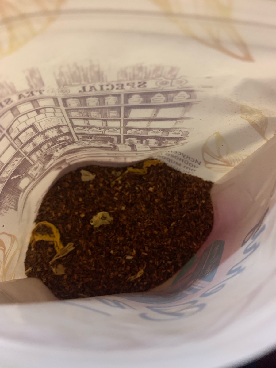 Условия хранения:Хранить при относительной влажности воздуха не более 70%Состав: Ройбуш, ароматизатор, лепестки подсолнечника.Описание:Ройбуш маракеш" - натуральная композиция из листьев и стеблей кустарникового растения из семейства бобовых, произрастающ