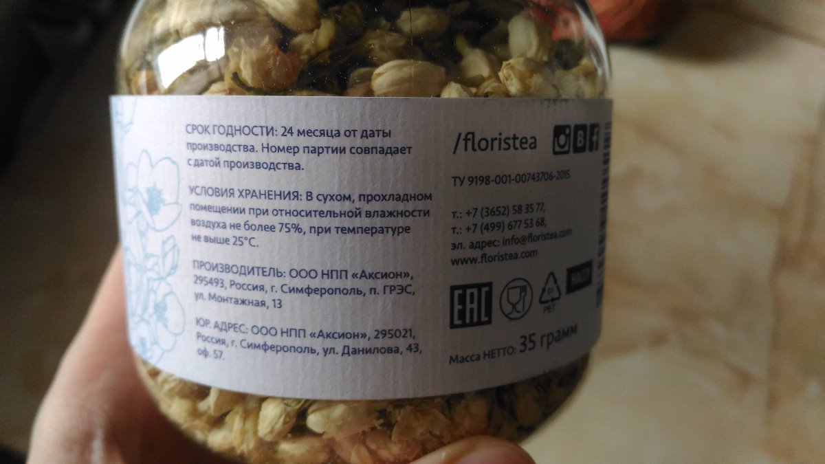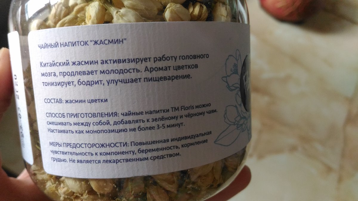 Состав:Жасмин цветки.Условия хранения:В сухом, прохладном месте, при относительной влажности воздуха не более 75%, и температуре не выше 25 °С.Описание:В прозрачной баночке сушеные цветки Жасмина (Jasminium), растущего в Азии. Обладает тонким сладким аром