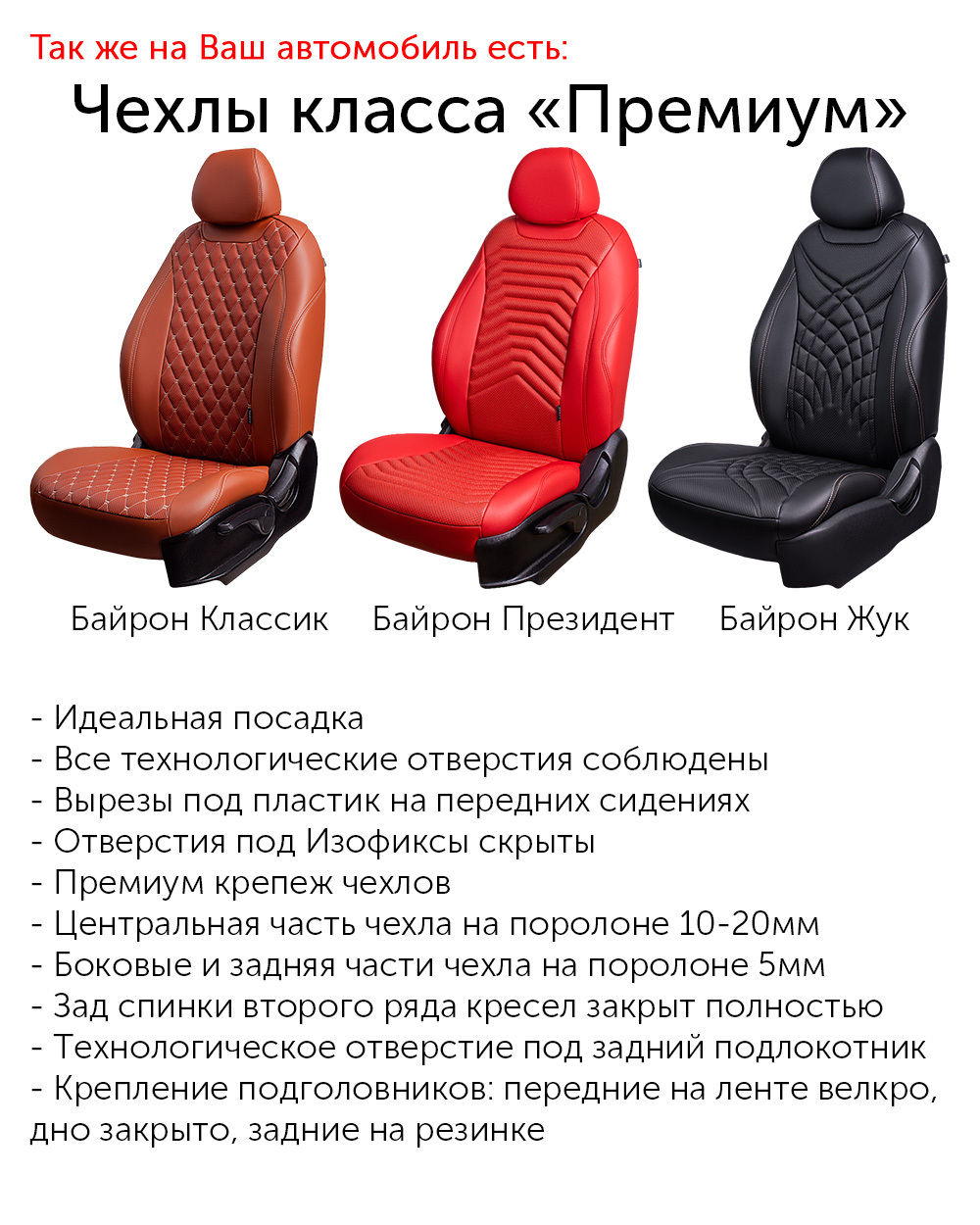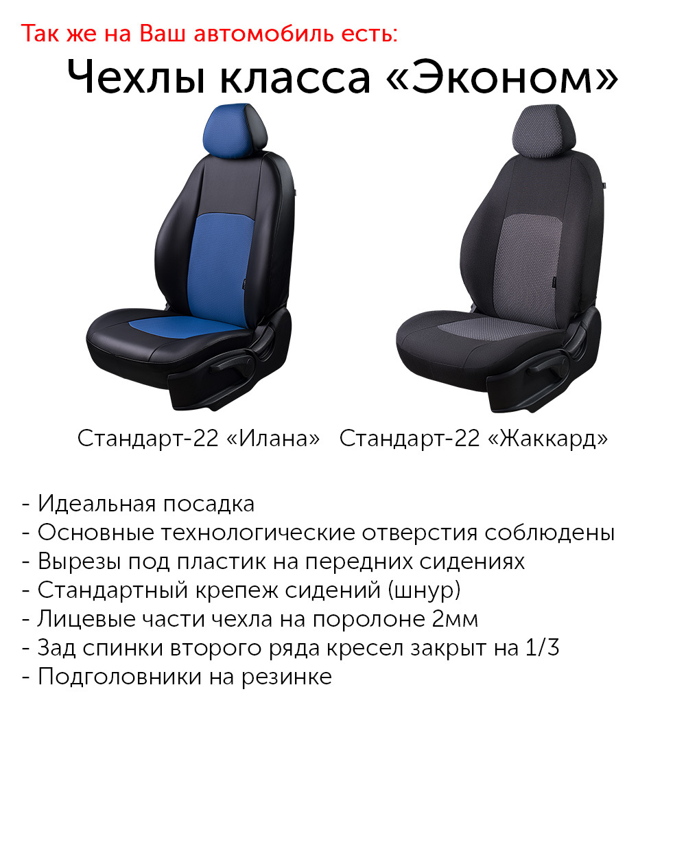ОсобенностиКрепеж, Износоустойчивая ткань, Использование с боковыми airbag