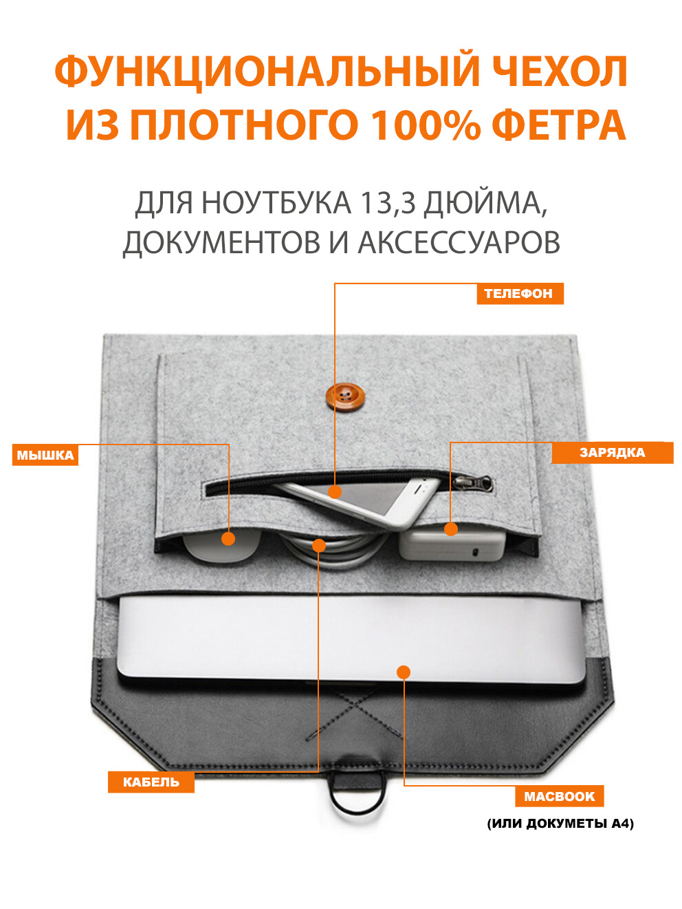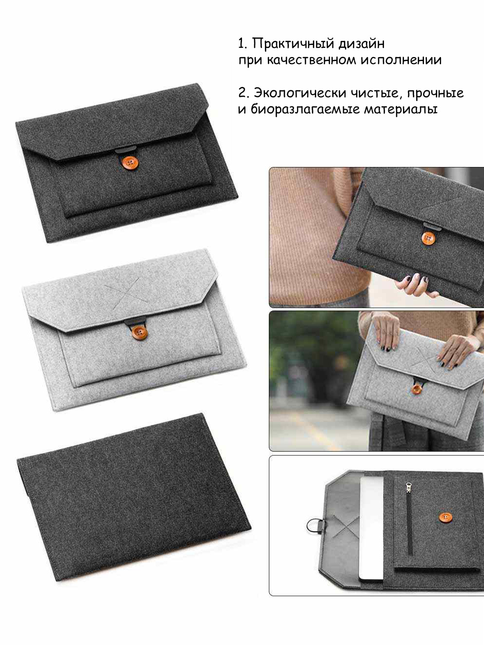Комплектация:Чехол для ноутбукаОписание:Чехол для ноутбука, макбука Эир, Про 13", 13,3". Выполнен из натурального и плотного фетра 2мм толщиной. Фетр, используемый нашей компанией не осыпается и держит форму. Чехол из фетра для Macbook Air, Pro имеет одно