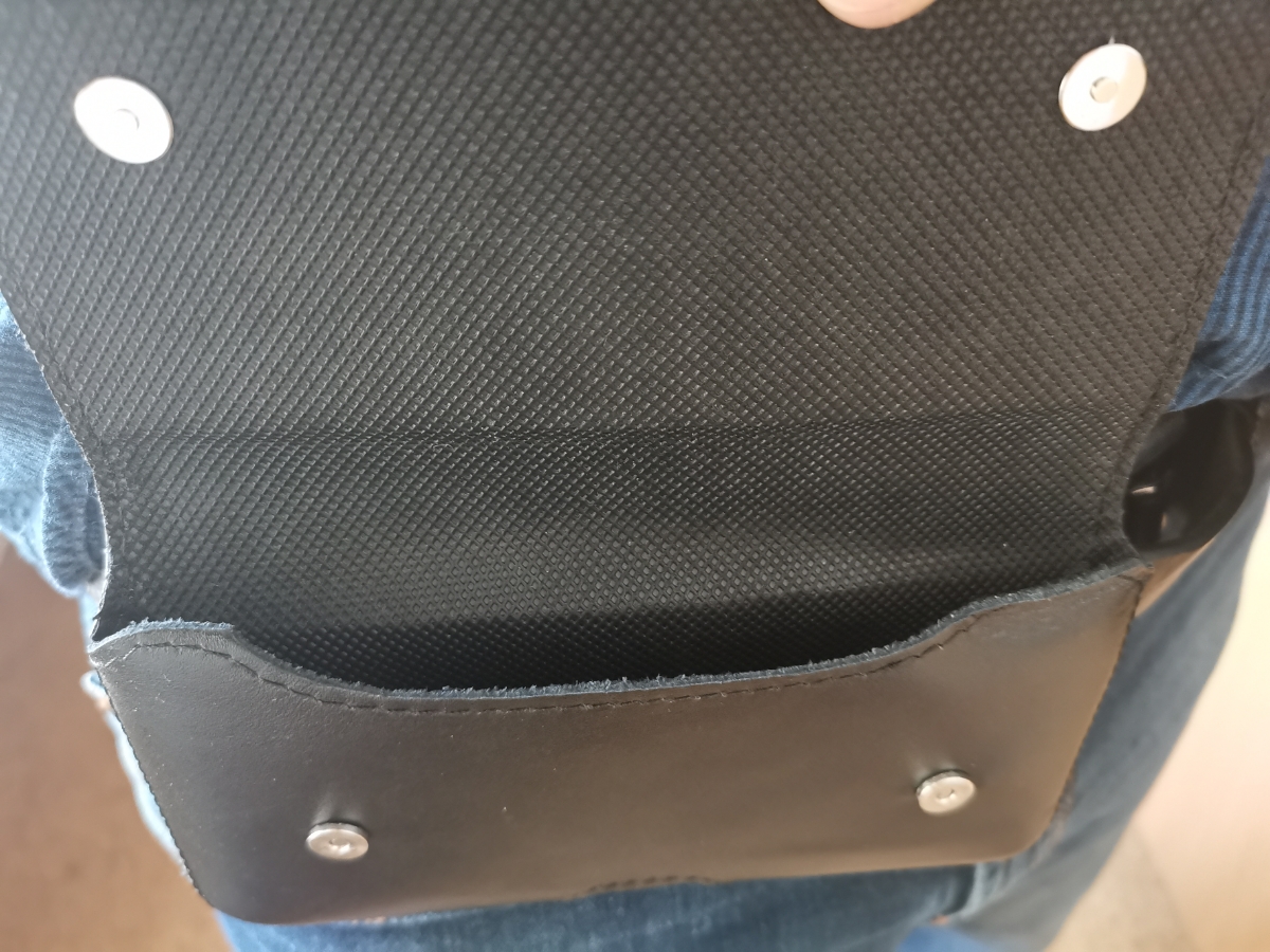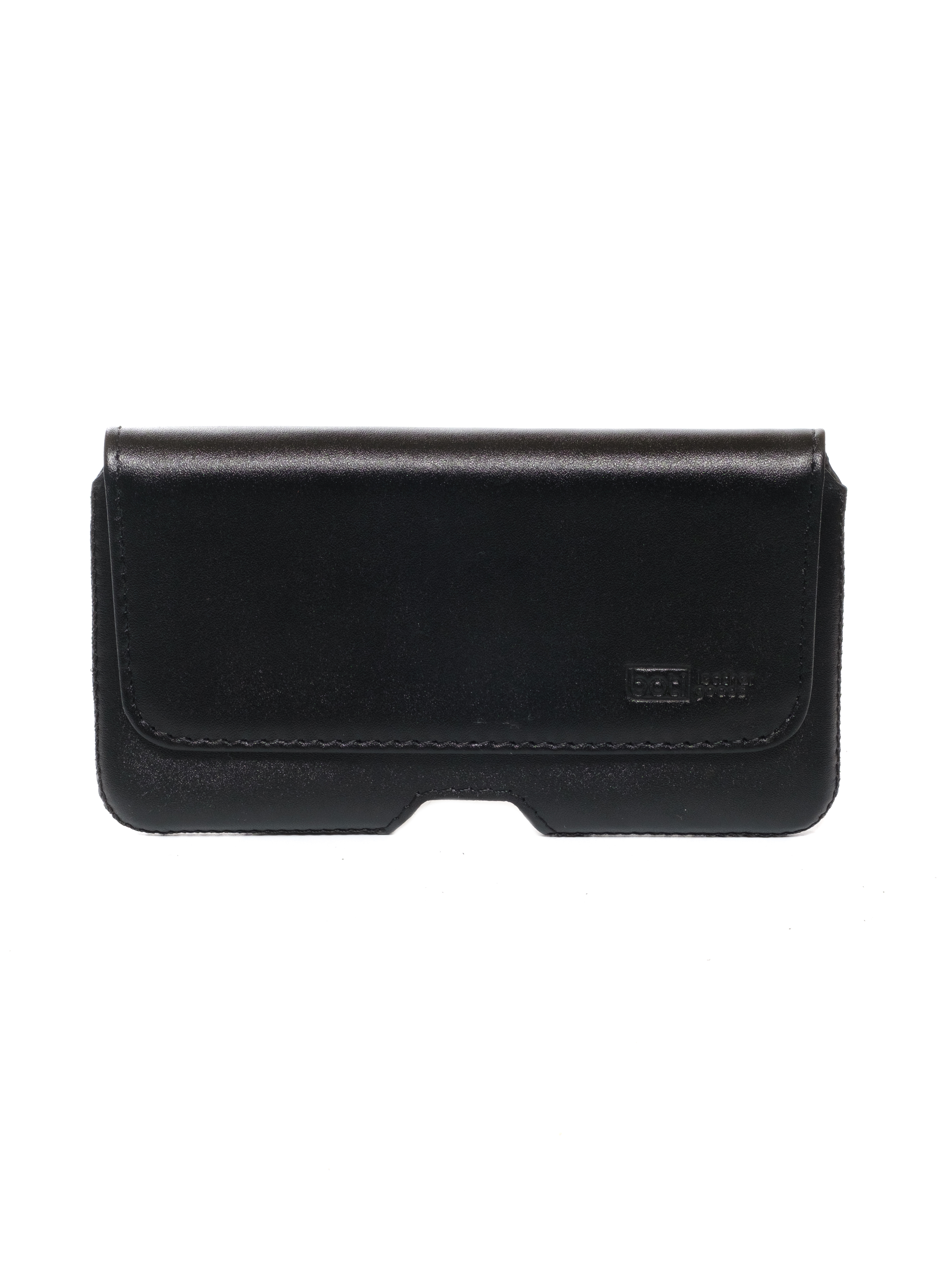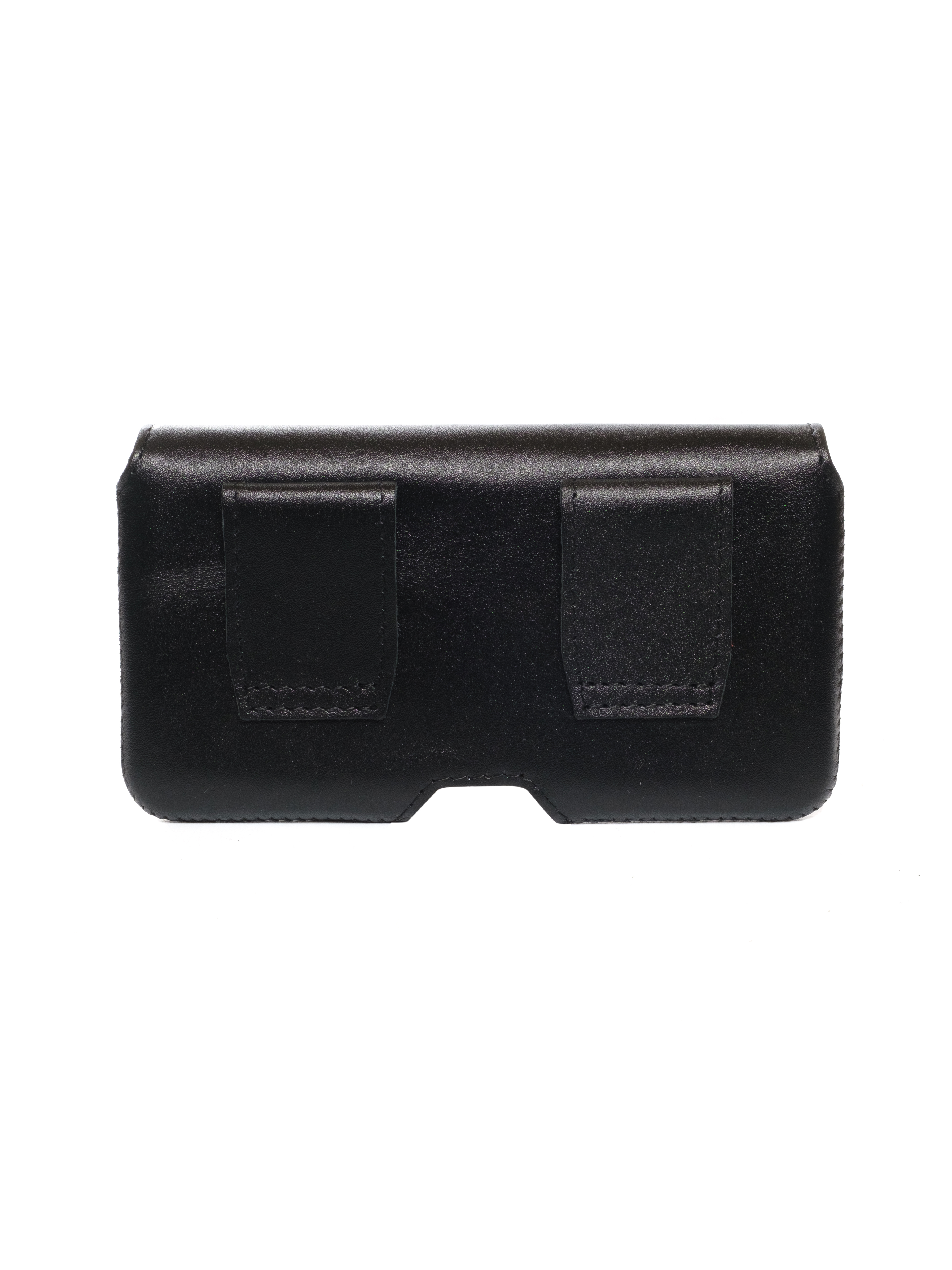 Кобура для ношения телефонов с диагональю до 7 дюйма из натуральной черной кожи. Удобное универсальное крепление находится с задней стороны чехла. Кобура вешается на ремень с помощью двух кожаных петель. Удобная выемка находится снизу аксессуара для быстр